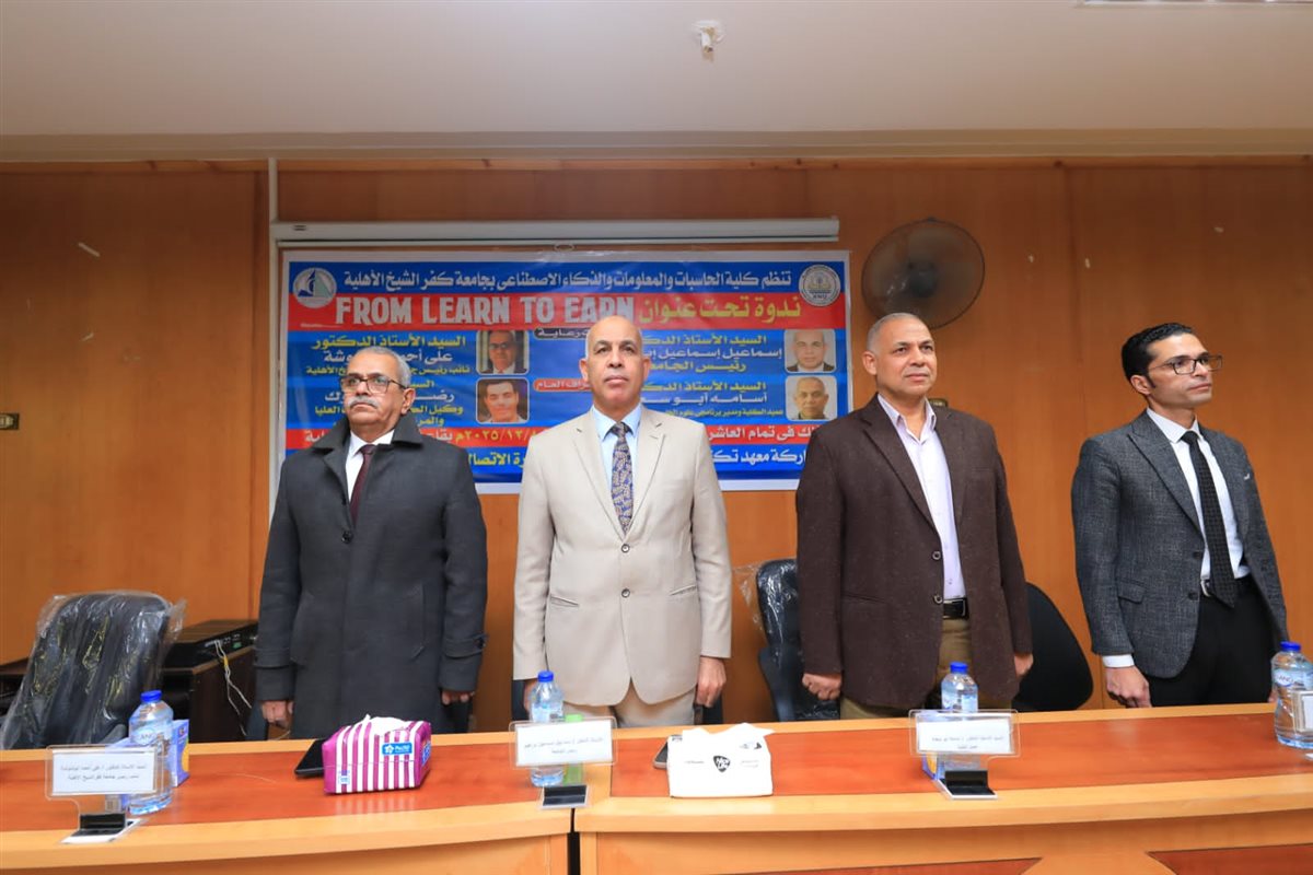 شهد الدكتور إسماعيل القن، القائم بعمل رئيس جامعة كفر الشيخ، فعاليات الندوة التي نظمتها كلية الحاسبات والمعلومات والذكاء الاصطناعي بجامعة كفر الشيخ الأهلية تحت عنوان "من التعلّم إلى الكسب – From Learn to Earn"، وذلك بالتعاون مع معهد تكنولوجيا المعلومات ITI التابع لوزارة الاتصالات وتكنولوجيا المعلومات.