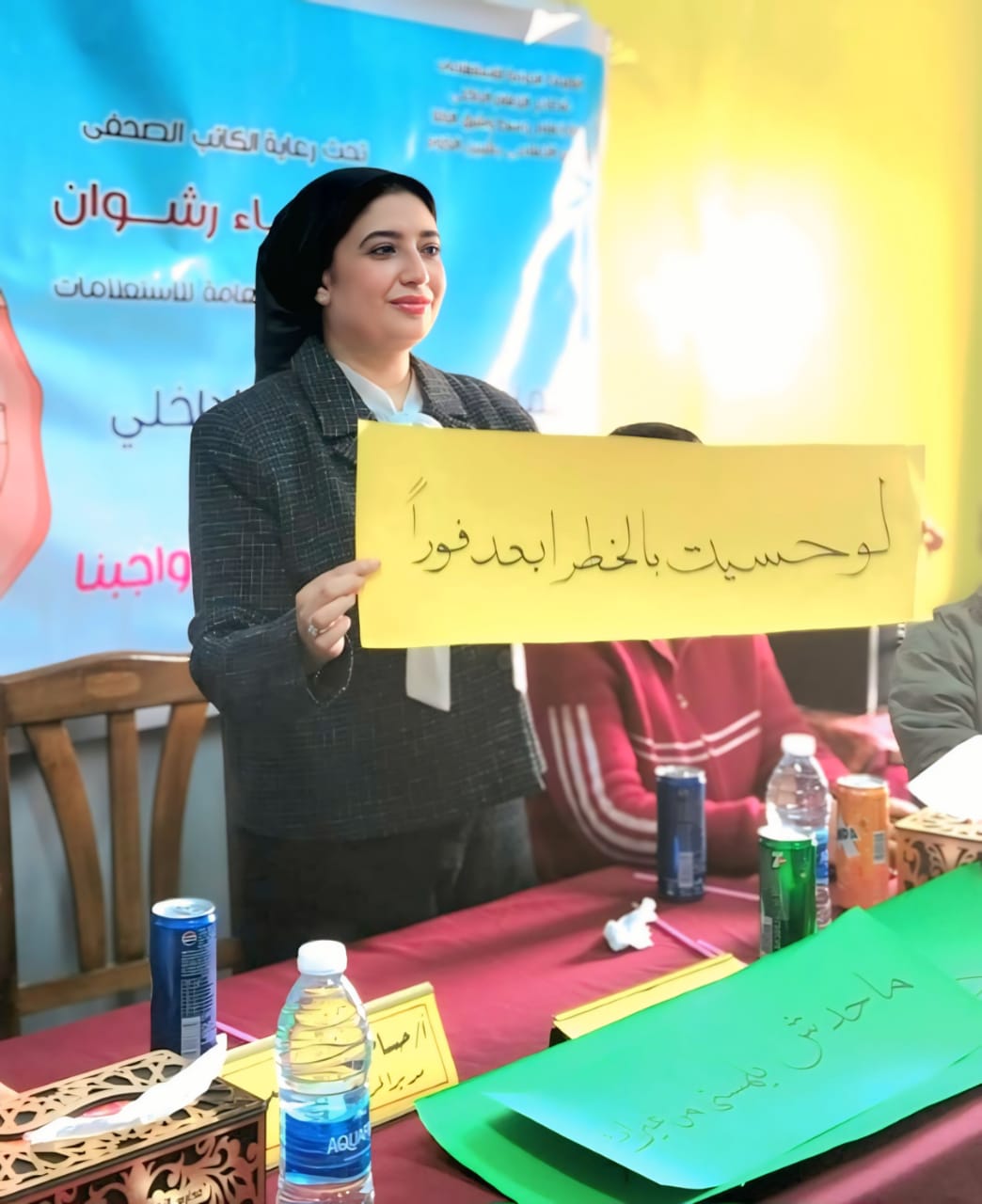 اوضحت الدكتورة جينا عزب ان الأمان الشخصي حق اصيل لكل طفل واشارت الى ان وعي الطفل بذاته يعد المدخل الى حماية هذا الحق وحرصت خلال حديثها على تقديم المحتوى بشكل مبسط اعتمادا على وسائل توضيح بصرية ومواد عرض مصورة وانشطة تفاعلية تهدف الى تحقيق المشاركة المباشرة وتعميق الفهم لدى الطلاب وركزت على التفريق بين السلوك السليم والسلوك الخاطئ بما يسهم في تدعيم الثقة بالنفس ورفع مستوى الوعي الوقائي لدى الفئة المستهدفة