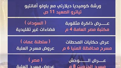 تتواصل فعاليات مهرجان المنيا الدولي للمسرح في دورته الثالثة، حيث يشهد اليوم الثالث، 9 ديسمبر 2025 مساءا، برنامجًا متنوعًا من العروض المسرحية التي تجمع تجارب محلية وعربية ودولية، وذلك وفق الجدول على نحو.