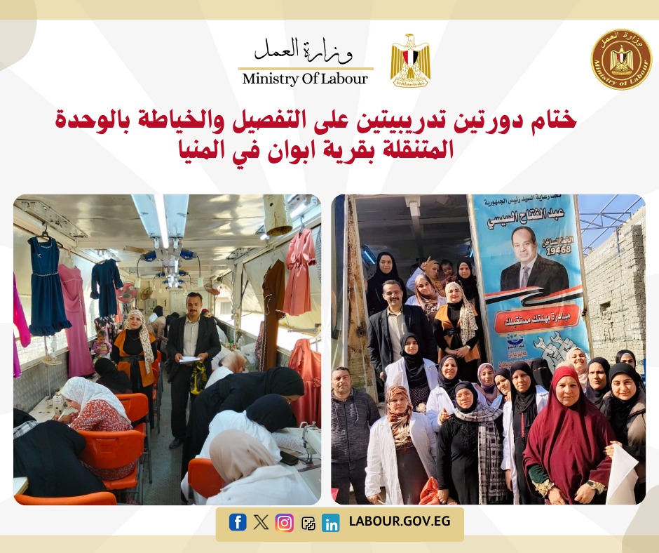 ختام دورتين تدريبيتين على التفصيل والخياطة بالوحدة المتنقلة بقرية ابوان في المنيا