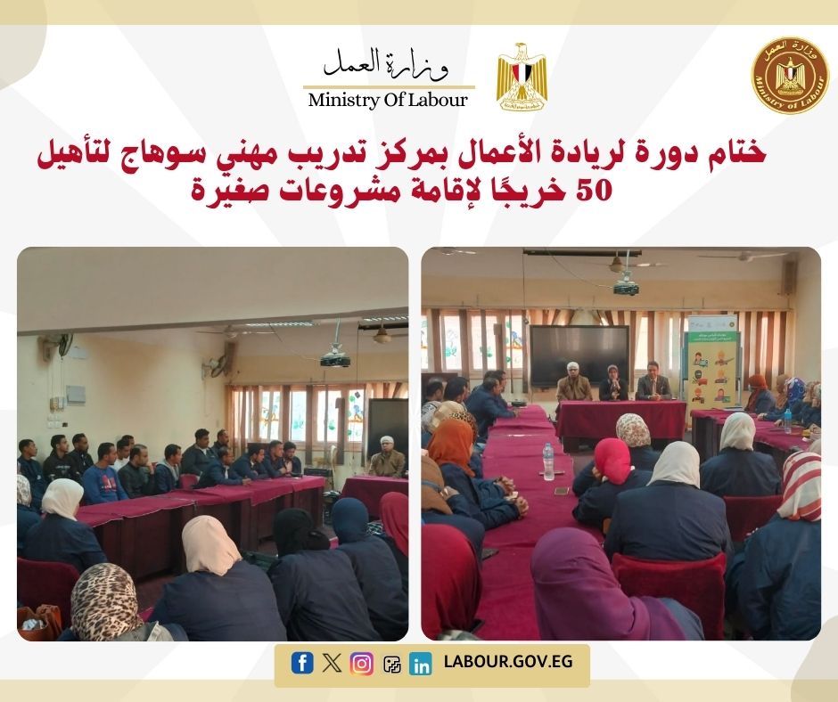 شهد مركز تدريب مهني سوهاج، ختام دورة ريادة الأعمال لعدد 50 من خريجي الدورات التدريبية المهنية، بالاشتراك مع جهاز تنمية المشروعات المتوسطة والصغيرة ومتناهية الصغر.