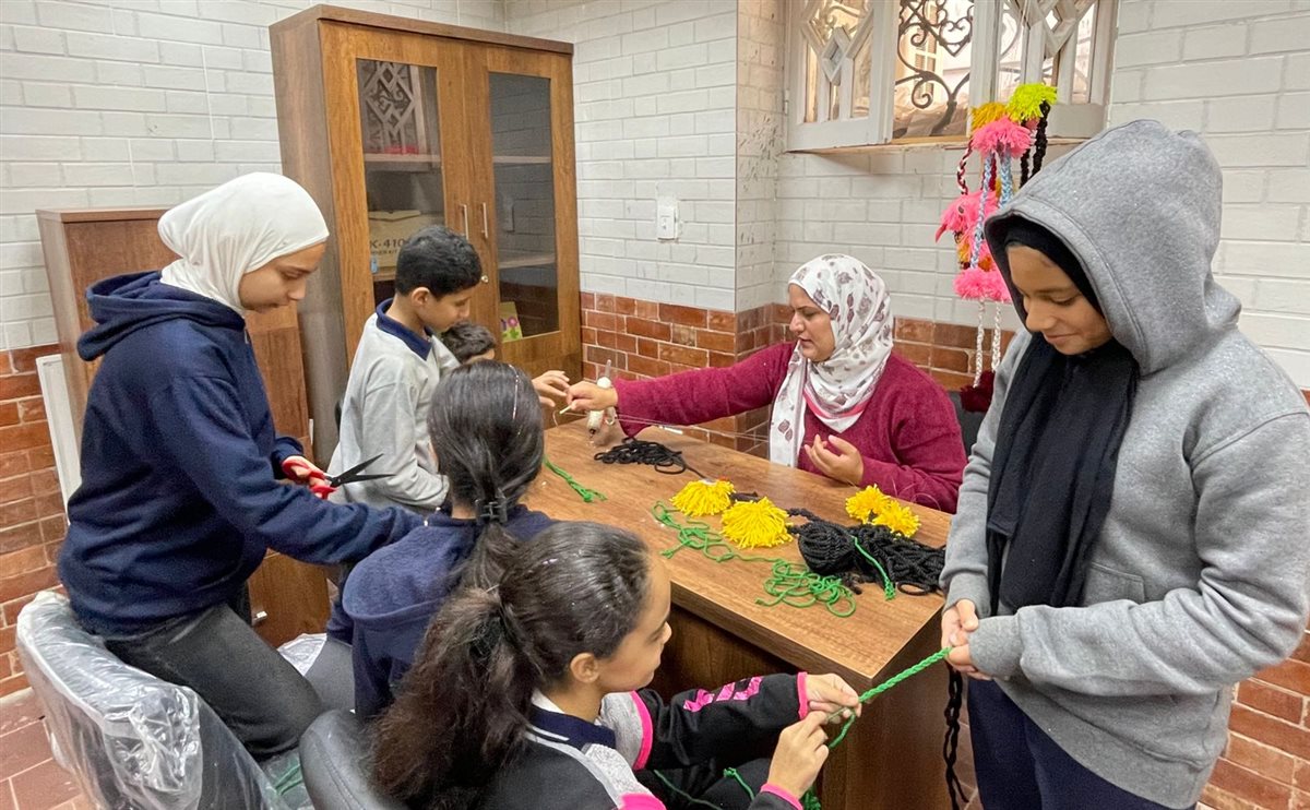 وفي مجال الأشغال اليدوية، دربت كل من الباحثة شيرين عبد المولي، وريهام محسن، الأطفال على تصميم كتاب يحكي رحلة نجاح المذيعة رضوى محمود، أول مذيعة من ذوي الاعاقة البصرية في الإذاعة المصرية.