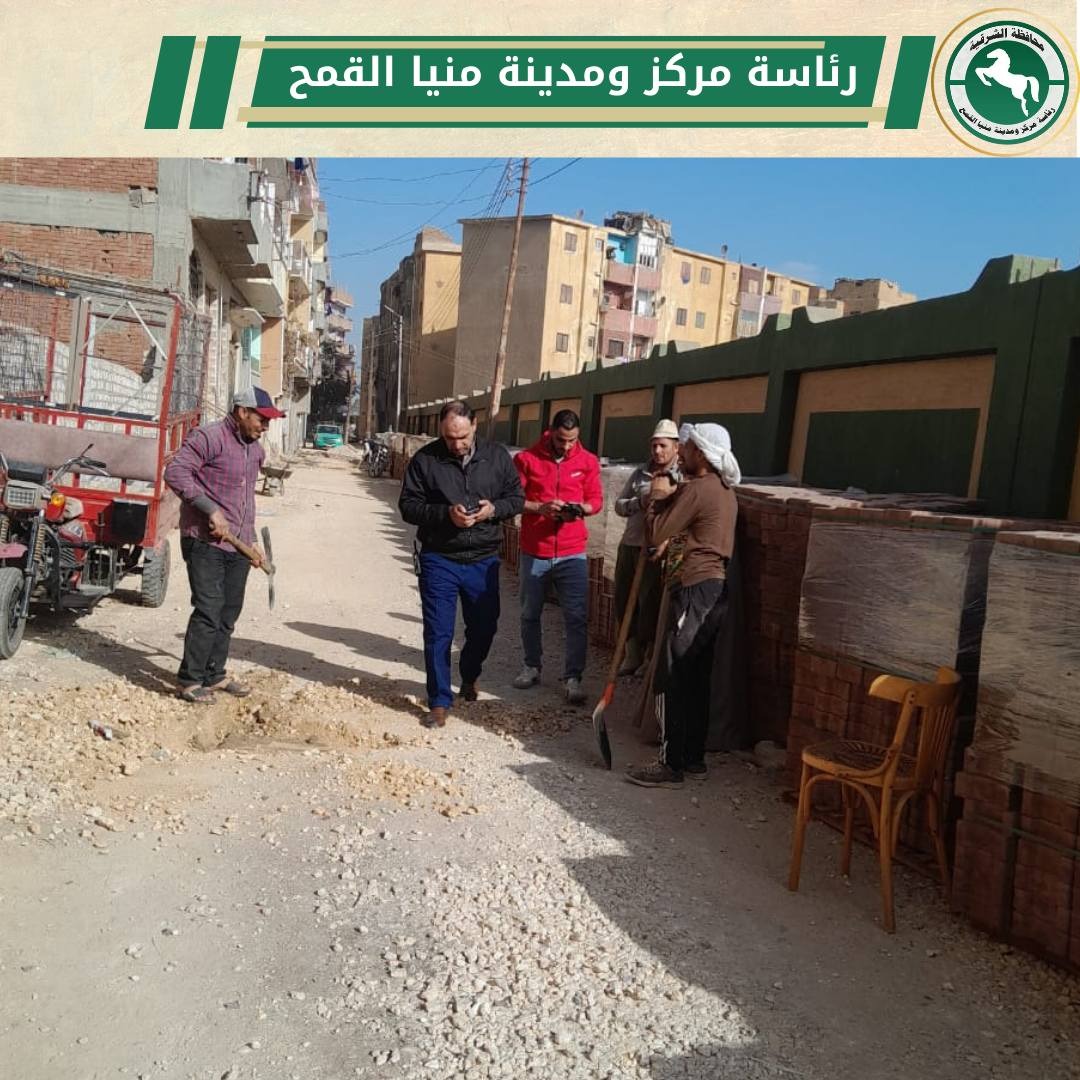 رئيس مركز ومدينة منيا القمح يتابع أعمال تركيب الإنترلوك ورفع غرف الصرف