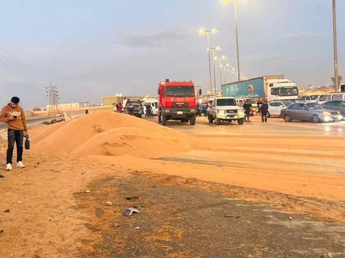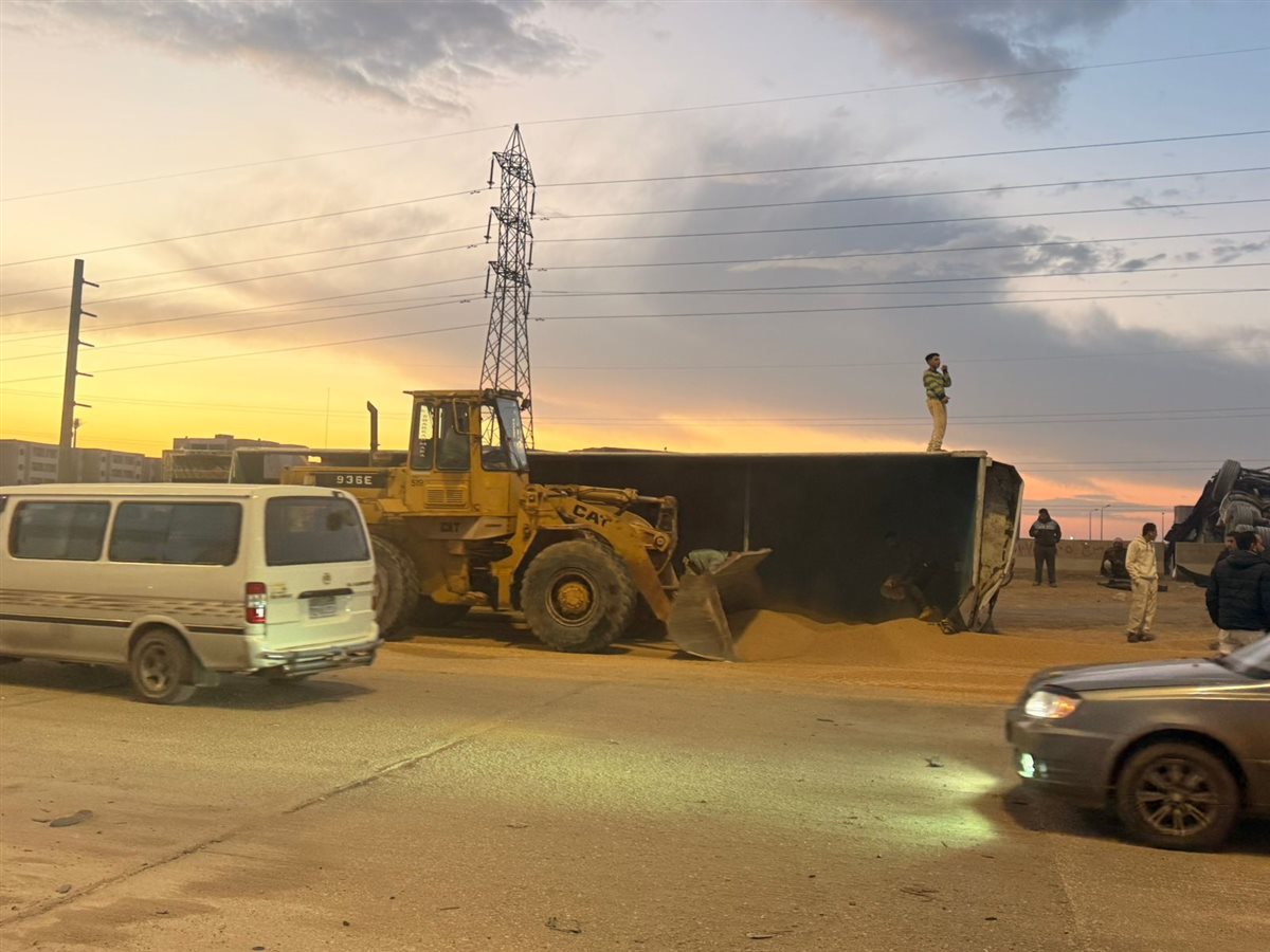 ويعد حادث انقلاب ترلة محملة بالغلال في منطقة المستقبل من الحوادث التي تؤثر بشكل مباشر على حركة السير نظرا لطبيعة الطريق الصحراوي وحركة المركبات الثقيلة.