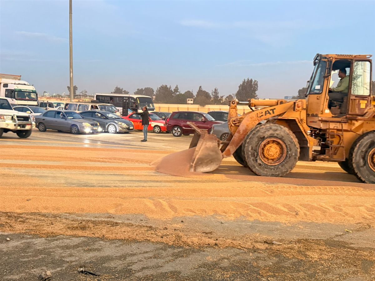 وأدى ذلك إلى انقلاب التريلا على جانب الطريق، وتناثر كميات كبيرة من القمح على الأسفلت، ما استدعى تدخل عاجل من قوات المرور وهيئة الإسعاف لتأمين الموقع وإزالة آثار الحادث.