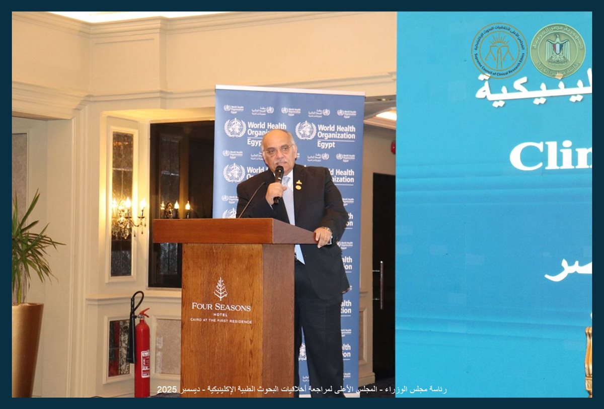 نظم المجلس الأعلى لمراجعة أخلاقيات البحوث الطبية الإكلينيكية التابع لرئاسة مجلس الوزراء، بالتعاون مع مكتب منظمة الصحة العالمية بمصر، ندوة علمية بعنوان «البحوث الطبية الإكلينيكية في مصر: التحديات، الحلول، والتوجهات المستقبلية»، بمشاركة قيادات صحية وبحثية ورقابية وجامعية وممثلي القطاع الخاص.