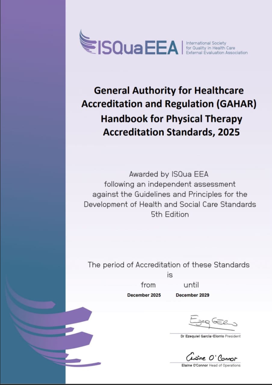 "جهار" تحصد خامس إنجاز دولي في 2025 باعتماد "ISQua" لمعايير مراكز العلاج الطبيعي