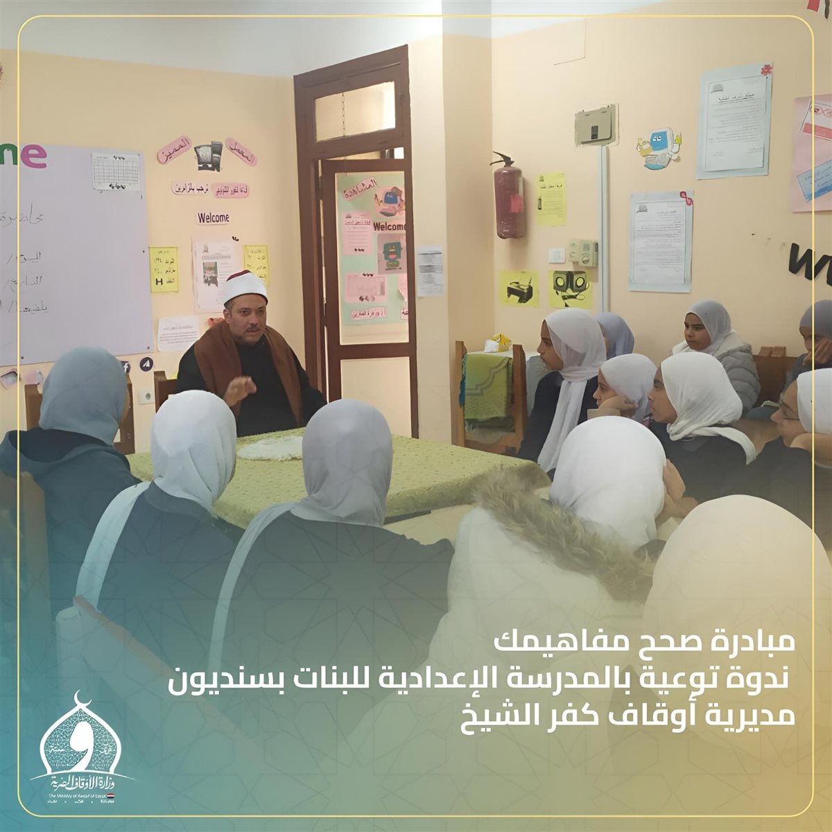 برعاية الدكتور أسامة السيد الأزهري وزير الأوقاف، وتوجيهات فضيلة الدكتور السيد حسين عبد الباري رئيس القطاع الديني، وتحت إشراف ومتابعة الدكتور رمضان عبد السميع إبراهيم مدير مديرية أوقاف كفر الشيخ، نظمت المديرية اليوم محاضرة دعوية هادفة بالمدرسة الإعدادية للبنات بسنديون، تحت عنوان: "التشكيك والحيرة ونشر روح التشاؤم".