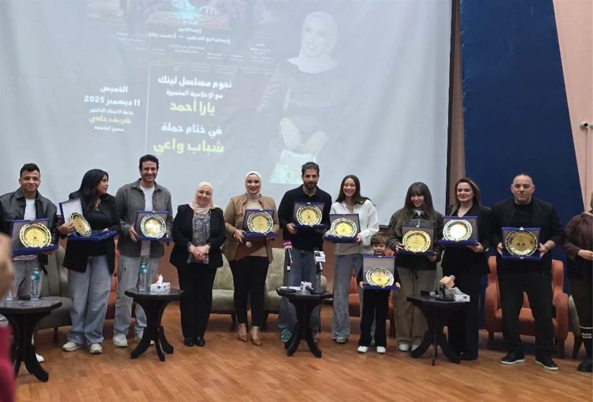 تصدّر تكريم أبطال مسلسل لينك والإعلامية يارا أحمد فعاليات ختام حملة "شباب واعي" بالجامعة المصرية الروسية، التي نظمتها الجامعة بالتعاون مع صندوق مكافحة وعلاج الإدمان للعام الثامن على التوالي، وسط حضور لافت من الطلاب وصنّاع الفن، وتفاعل واسع مع البرنامج الذي حمل رسائل توعوية هادفة.