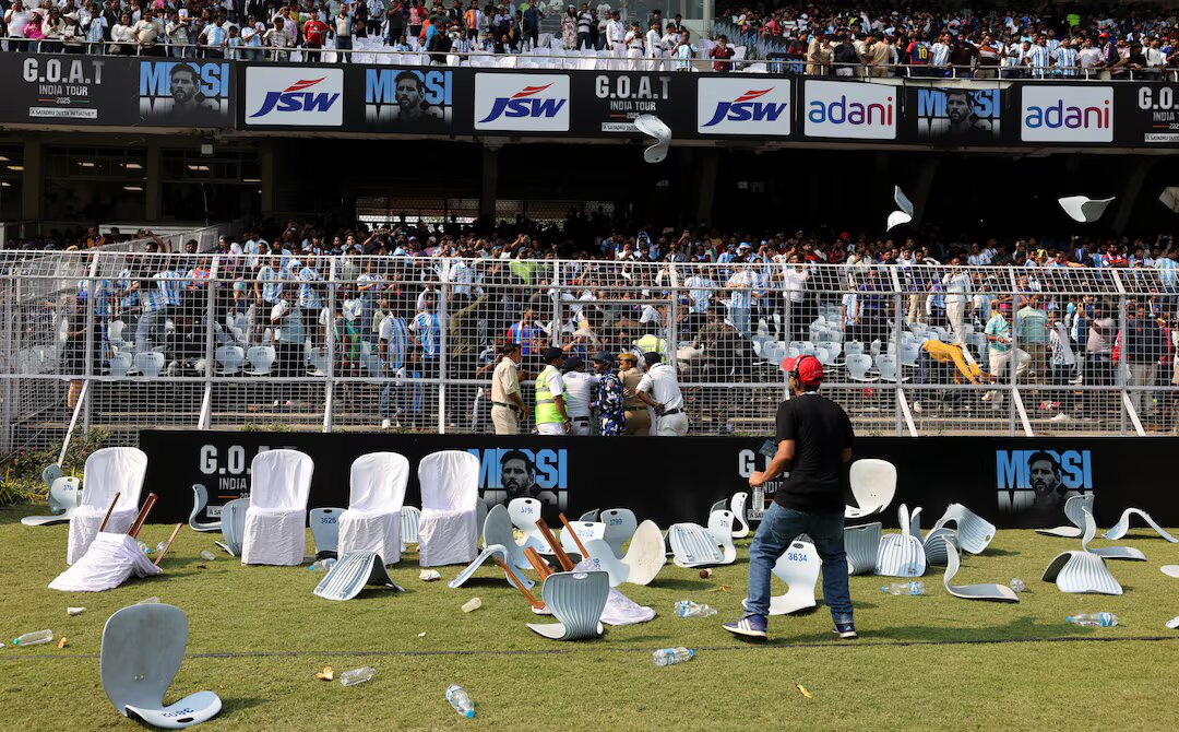 أطلق الحضور الجماهيري في استاد سالت ليك في مدينة كولكاتا الهندية رد فعل عنيف مساء اليوم السبت عقب الظهور القصير للنجم الأرجنتيني ليونيل ميسي خلال زيارة ميسي للهند التي كانت نقطة انطلاق جولة رياضية وترفيهية وتجارية في البلاد.