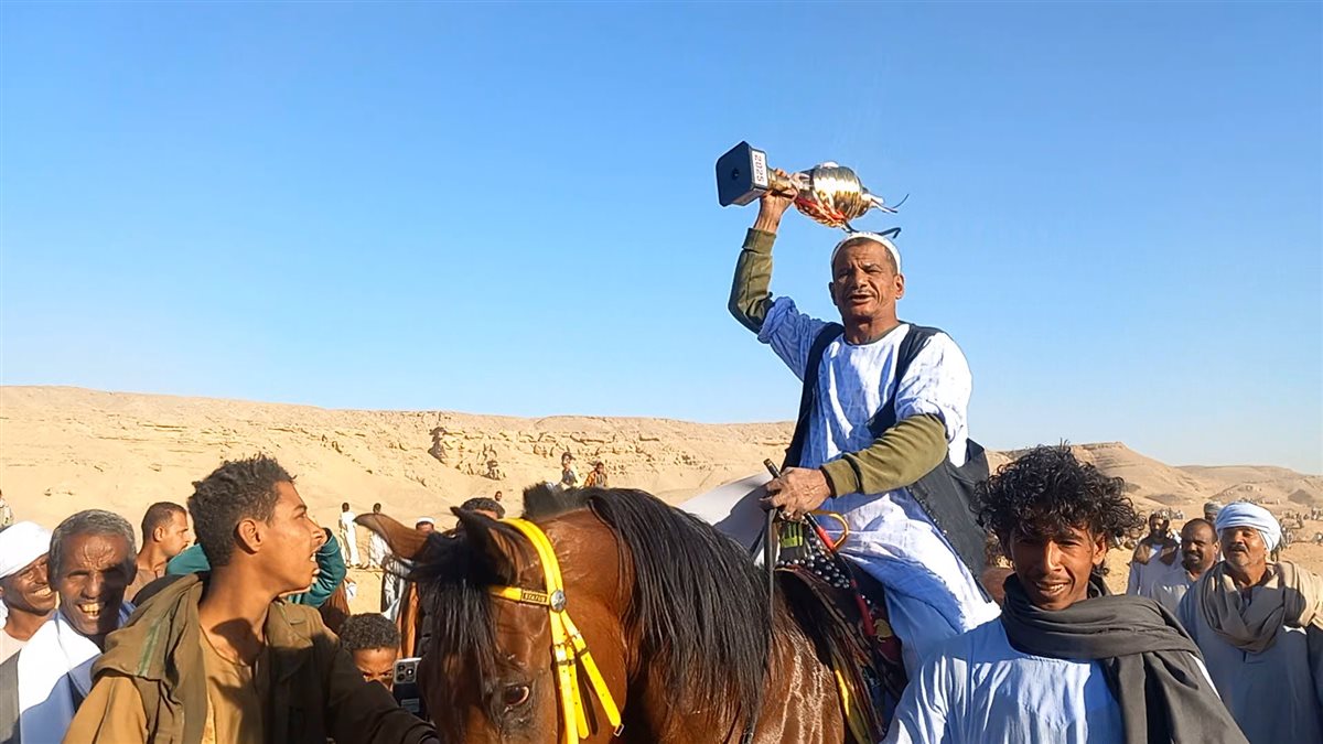 وأضاف الفارس اسامه من قرية قته مركز نصر النوبة أن هذه تعد اول مشاركه لي بجواد ملك لاحد الاشخاص من قرية العتمور مستجد وحصلت علي الكأس الصغير، وتعتبر بنسبه لأول مره مع الجواد "ورد"كما يطلقون عليها إنجاز كبير وسط العمالقة من فرسان أسوان والاقصر.