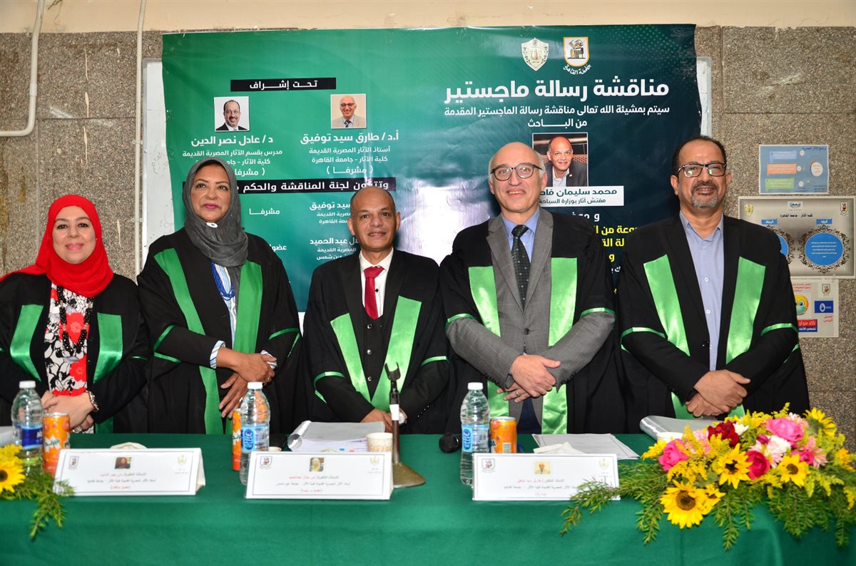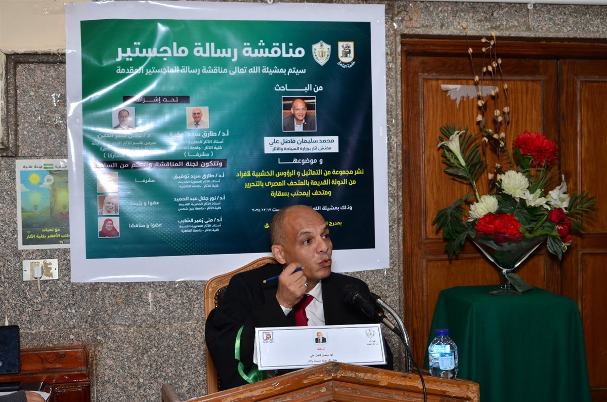 شهدت كلية الآثار بجامعة القاهرة مناقشة رسالة ماجستير مقدمة من الباحث محمد سليمان فاضل علي، تحت عنوان "نشر مجموعة من التماثيل والرؤوس الخشبية لأفراد من الدولة القديمة بالمتحف المصري بالتحرير ومتحف إيمحتب بسقارة".
