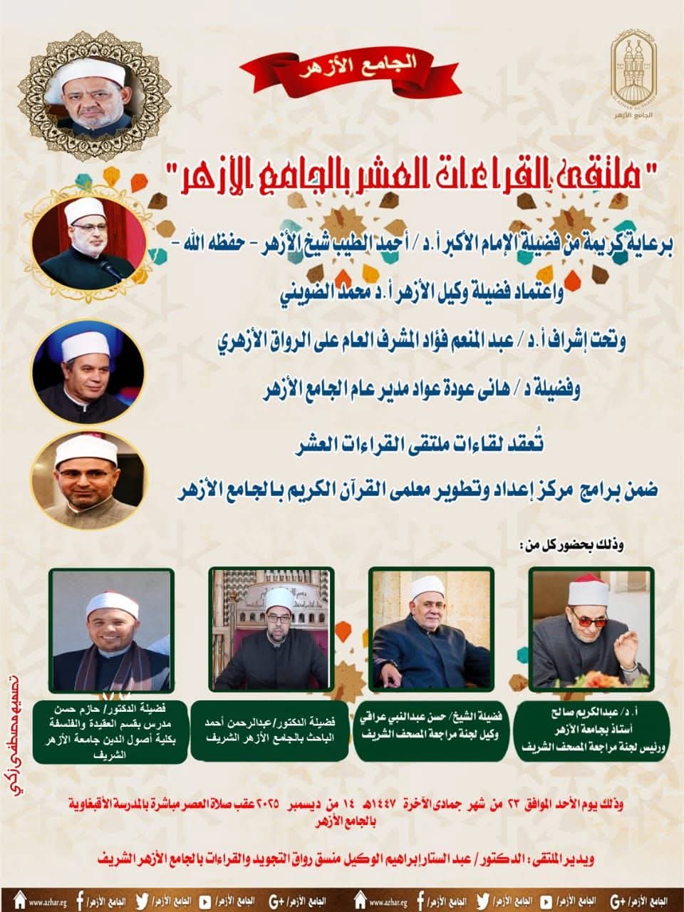 يأتي ذلك وفق توجيهات الإمام الأكبر الدكتور أحمد الطيب شيخ الأزهر، وباعتماد الدكتور محمد الضويني، وكيل الأزهر، وبإشراف الدكتور عبد المنعم فؤاد المشرف العام على الأنشطة العلمية للرواق الأزهري بالجامع الأزهر، والدكتور عبد الكريم صالح، رئيس لجنة مراجعة المصحف الشريف، والشيخ حسن عبد النبي عراقي، وكيل لجنة مراجعة المصحف الشريف، ود. هاني عودة، مدير عام الجامع الأزهر،والشيخ إبراهيم حلس مدير إدارة الشئون الدينية، ود. مصطفى شيشي مدير إدارة شئون الأروقة بالجامع الأزهر.