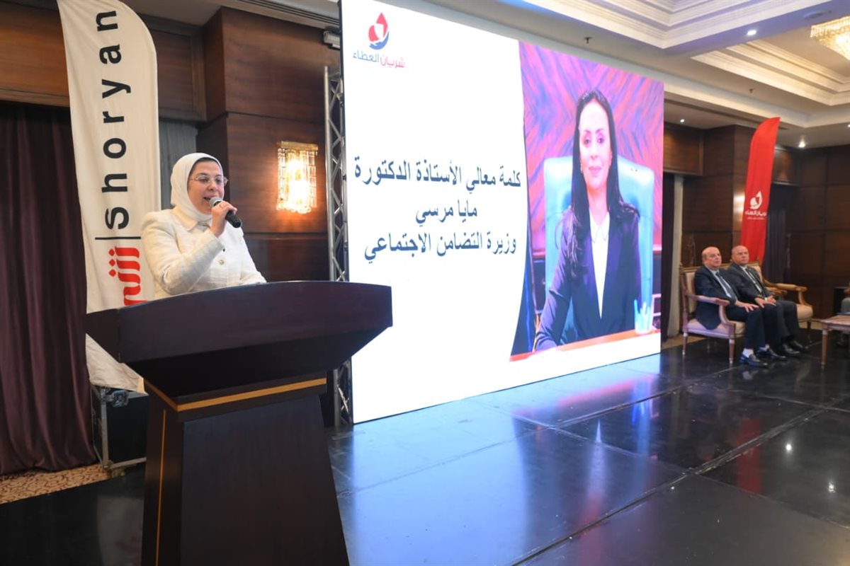 وأشارت وزيرة التضامن الاجتماعي في كلمتها إلى أنه في إطار سعينا لدعم جهود المجتمع المدني للتبرع بالدم؛ يمكن أن تتحول كل جمعية أهلية إلى نقطة نور دائمة، موضحة أن السيدة انتصار السيسي قرينة السيد رئيس الجمهورية الرئيسة الشرفية للهلال الأحمر المصري وجهت بالتوسع في بنوك الدم التابعة للهلال الأحمر المصري للمساهمة فى تأمين الدم الآمن.