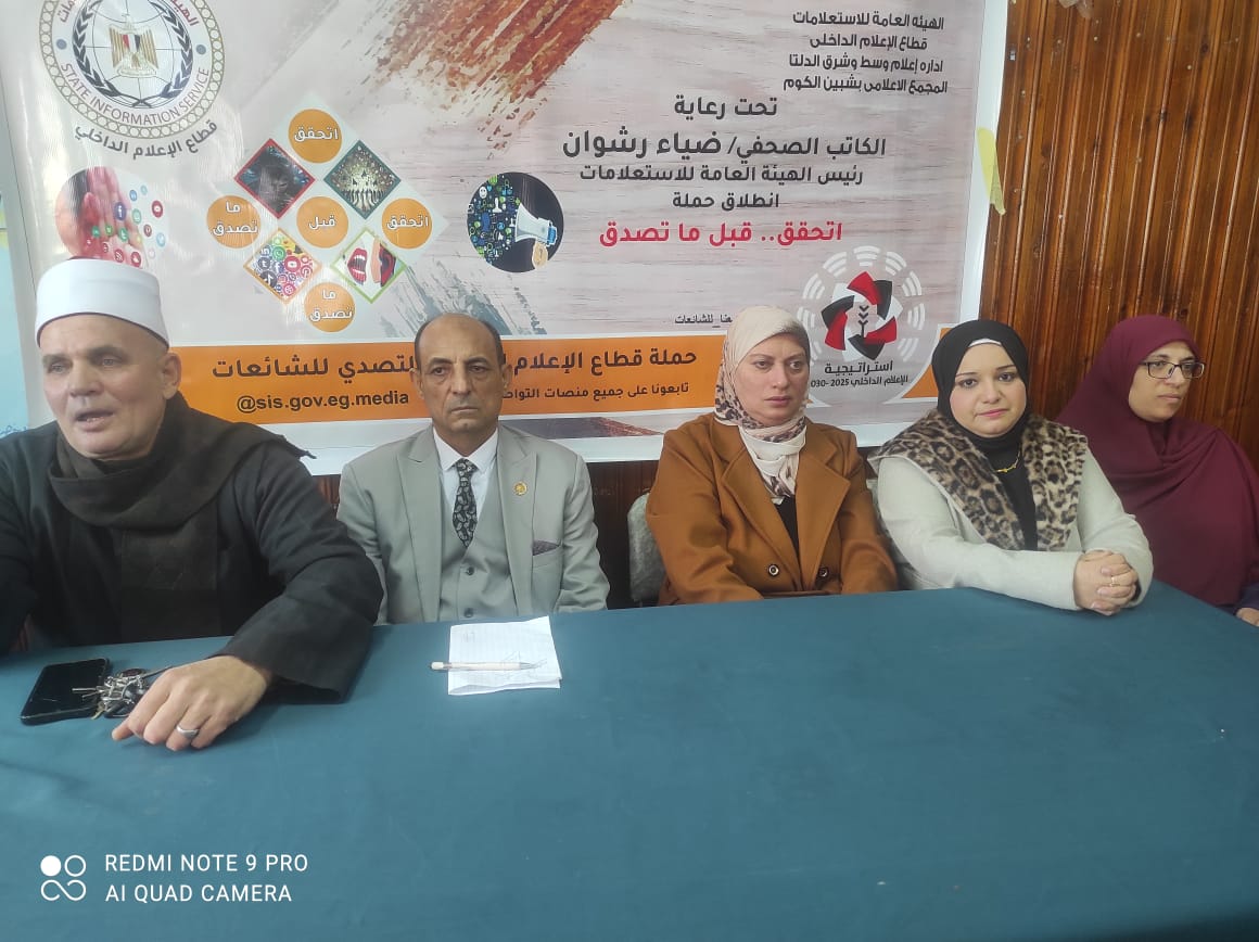 سلطا هذه الندوة الضوء على مكافحة الشائعات في مصر من خلال فعالية رسمية عقدت بمدينة تلا في محافظة المنوفية ضمن مسار وطني يستهدف رفع الوعي المجتمعي بمخاطر تداول المعلومات غير الموثوقة وتأثيرها المباشر على الاستقرار العام وعلى بناء الثقة داخل المجتمع.