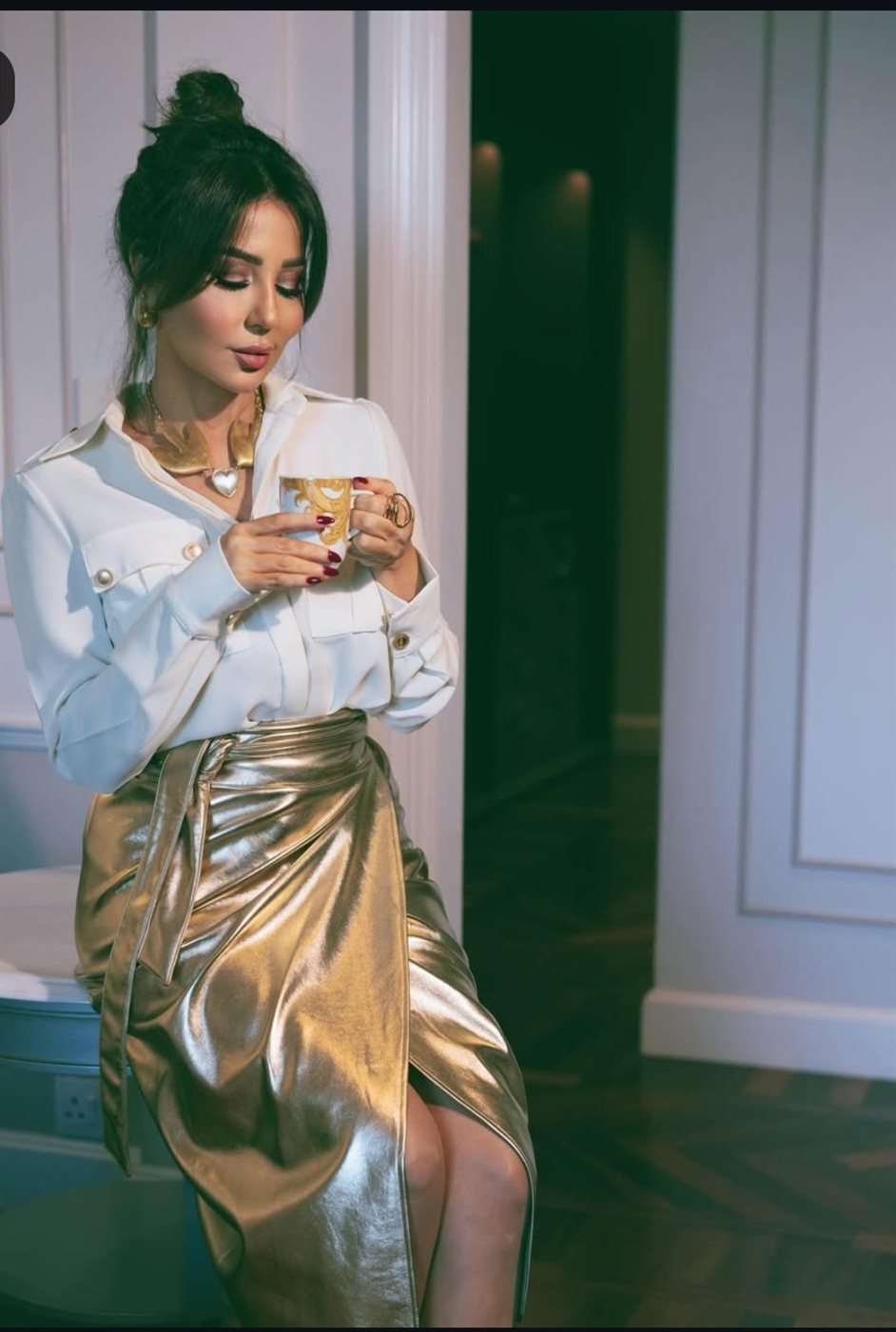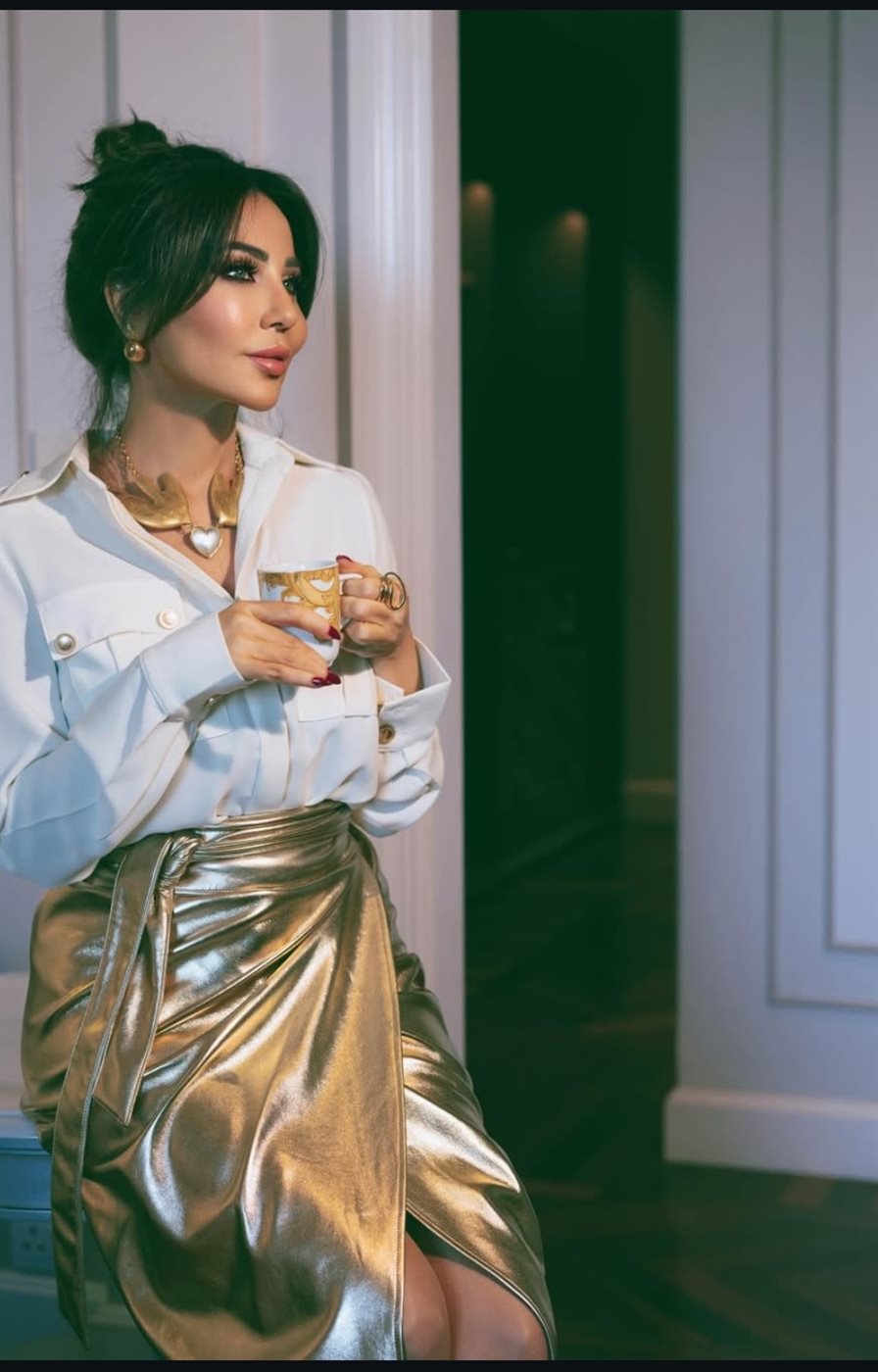 وبدت رابعة الزيات بإطلالتها العصرية، مرتديه قميص ابيض بازرار ذهبية من الأمام ونسقت عليه جيبه قصيرة بلون الفضي لتواكب الموضة.