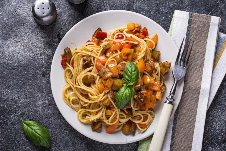 استمتعي بطبق مكرونة إيطالي شهي مليء بالخضار الطازجة مثل الفلفل والباذنجان، مع صلصة الطماطم الغنية ولمسة من الريحان وجبن البارميزان، وصفة صحية وسهلة التحضير تناسب الغداء أو العشاء.