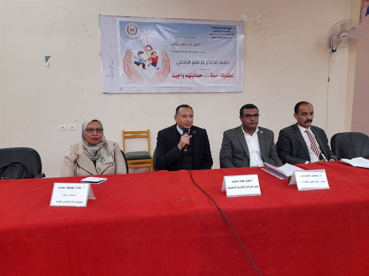 بدأ مجمع إعلام الوادى الجديد تنفيذ فعالية توعوية موسعة تندرج ضمن الحملة الإعلامية التي أطلقها قطاع الإعلام الداخلي بالهيئة العامة للاستعلامات لمناقشة قضية التحرش تحت شعار لطفولة آمنة حمايتهم واجبنا حيث جاءت الفعالية تأكيدا على الدور الحيوي الذي يضطلع به إعلام الوادى الجديد في بناء الوعي العام وحماية النشء وتعزيز مفاهيم الأمان الجسدي