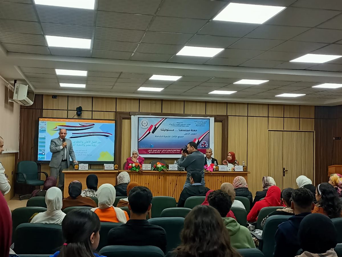 عقد لقاء صباح يوم الاثنين الموافق 15 ديسمبر 2025 في تمام الساعة العاشرة صباحا داخل مقر كلية التجارة جامعة أسيوط تحت إشراف حمدي سعيد رئيس الإدارة المركزية لإعلام شمال ووسط الصعيد حيث استهدف اللقاء طلبة وطالبات الكلية باعتبارهم ركيزة أساسية في دعم خطط التنمية المستدامة وبناء المستقبل الوطني على أسس المشاركة والمسؤولية المجتمعية