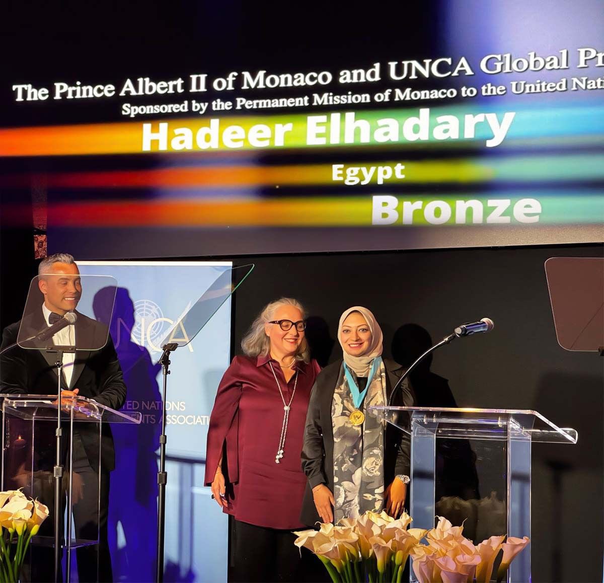 وأردفت: “وتسلمت الصحفية المصرية الميدالية البرونزية للجائزة في مدينة نيويورك في الولايات المتحدة الأمريكية، في مقر الأمم المتحدة خلال حفل الجوائز التاسع والعشرين لرابطة مراسلين الأمم المتحدة، وسلمتها الجائزة السفيرة إيزابيل بيكو، الممثلة الدائمة لإمارة موناكو لدى الأمم المتحدة”.