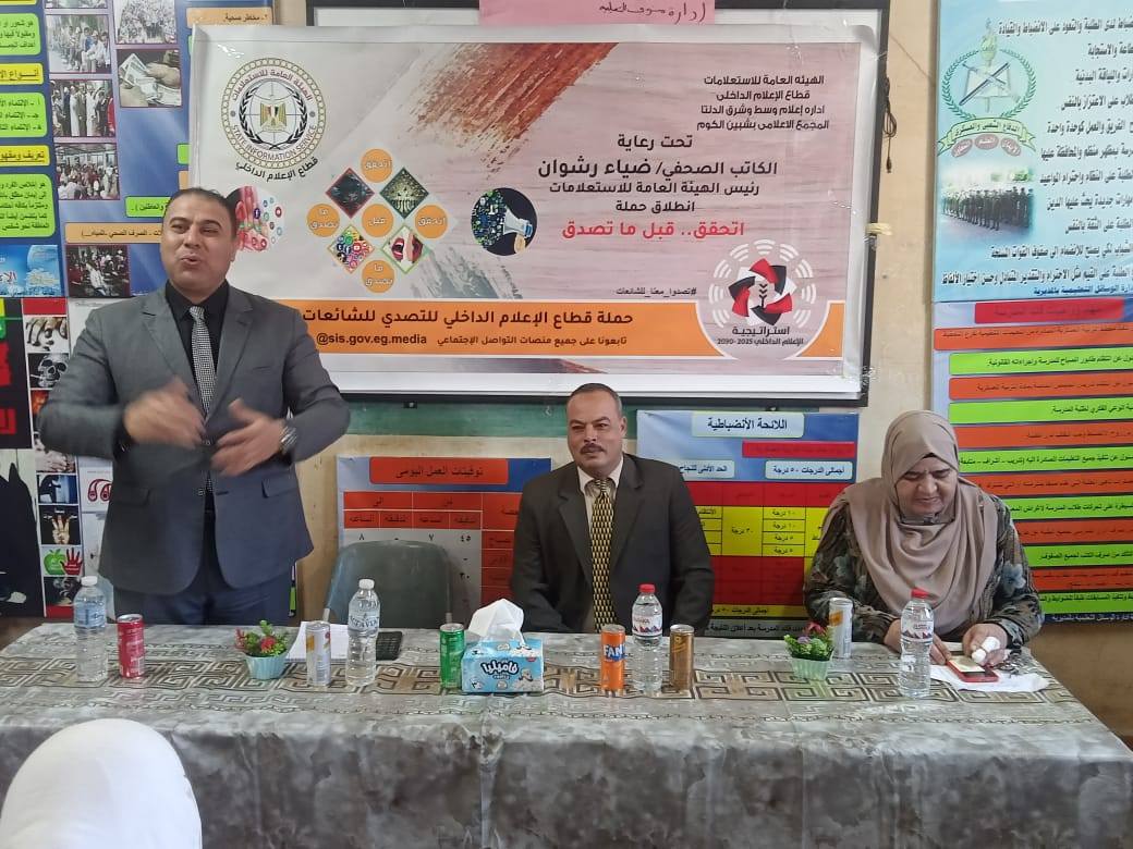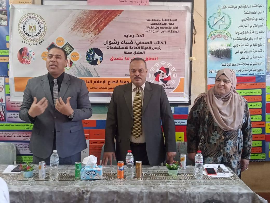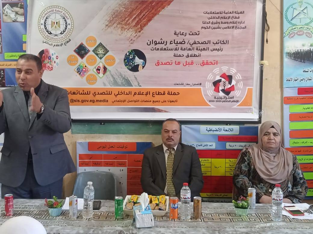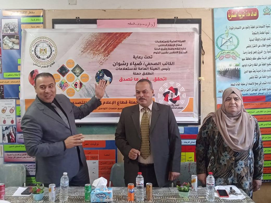 نفذ المجمع الإعلامي بشبين الكوم لقاء إعلاميا موسعا ضمن حملة التوعية التي تشرف عليها الهيئة العامة للاستعلامات برئاسة الدكتور ضياء رشوان، وذلك تحت شعار "اتحقق قبل ما تصدق" وبإشراف الدكتور أحمد يحيى رئيس قطاع الإعلام الداخلي، حيث ركز اللقاء على تسليط الضوء على أضرار السوشيال ميديا على النشء وأهمية مواجهة الشائعات.