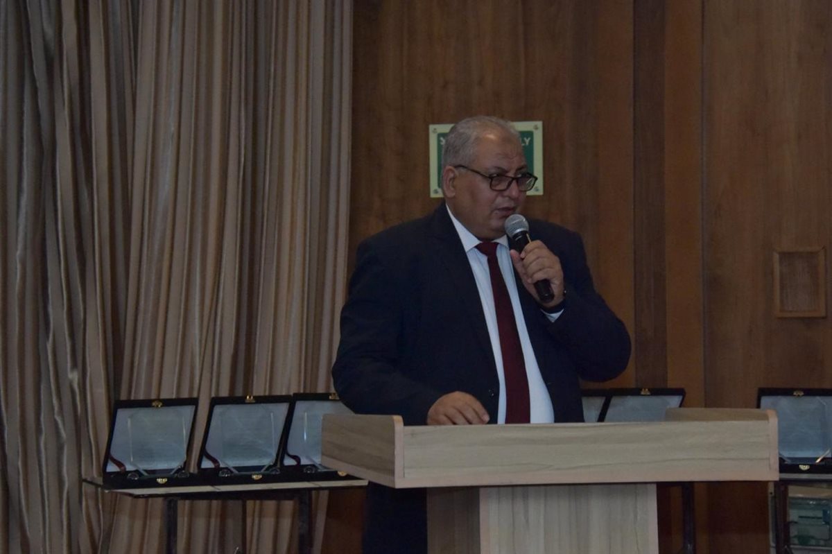 كما قام المهندس مبروك عامر بالإنابة عن المهندس طارق النبراوي نقيب المهندسين بتسليم درع النقابة للمهندس إبراهيم فتحي تقديراً وتكريما لشركة مصر للطيران للصيانة والأعمال الفنية الصرح الهندسي العريق ودورها الريادى فى المنطقه .