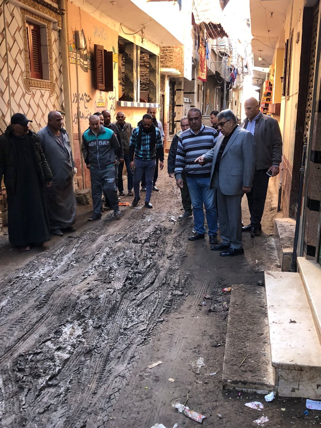 محافظ الدقهلية يتفقد بعض شوارع قرية دنجواي بشأن شكوى صرف صحي