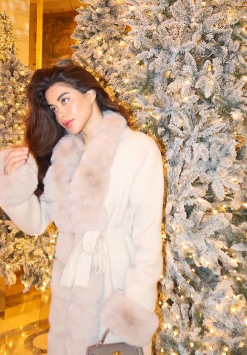 وبدت يارا السكري بإطلالة ساحرة، مرتدية بالطو صمم من قماش الجوخ المزين بالفرو من الأطراف باللون الأوف وايت.