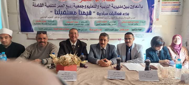 مؤكدا على تنفيذ فعاليات مبادرة قيمنا مستقبلنا بالتعاون مع جمعية ربيع العمر للتنمية الشاملة، بعد موافقة الإدارة المركزية لمكافحة التسرب وتعليم الكبار "إدارة المشاركة المجتمعية" بوزارة التربية والتعليم برئاسة راندا حلاوة مدير الإدارة المركزية للتسرب وتعليم الكبار ومحمد إبراهيم مدير الإدارة العامة للمشاركة المجتمعية بالوزارة.