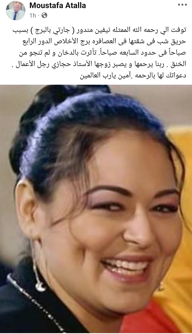 الدخان السبب.. تفاصيل وفاة الفنانة نيفين مندور
