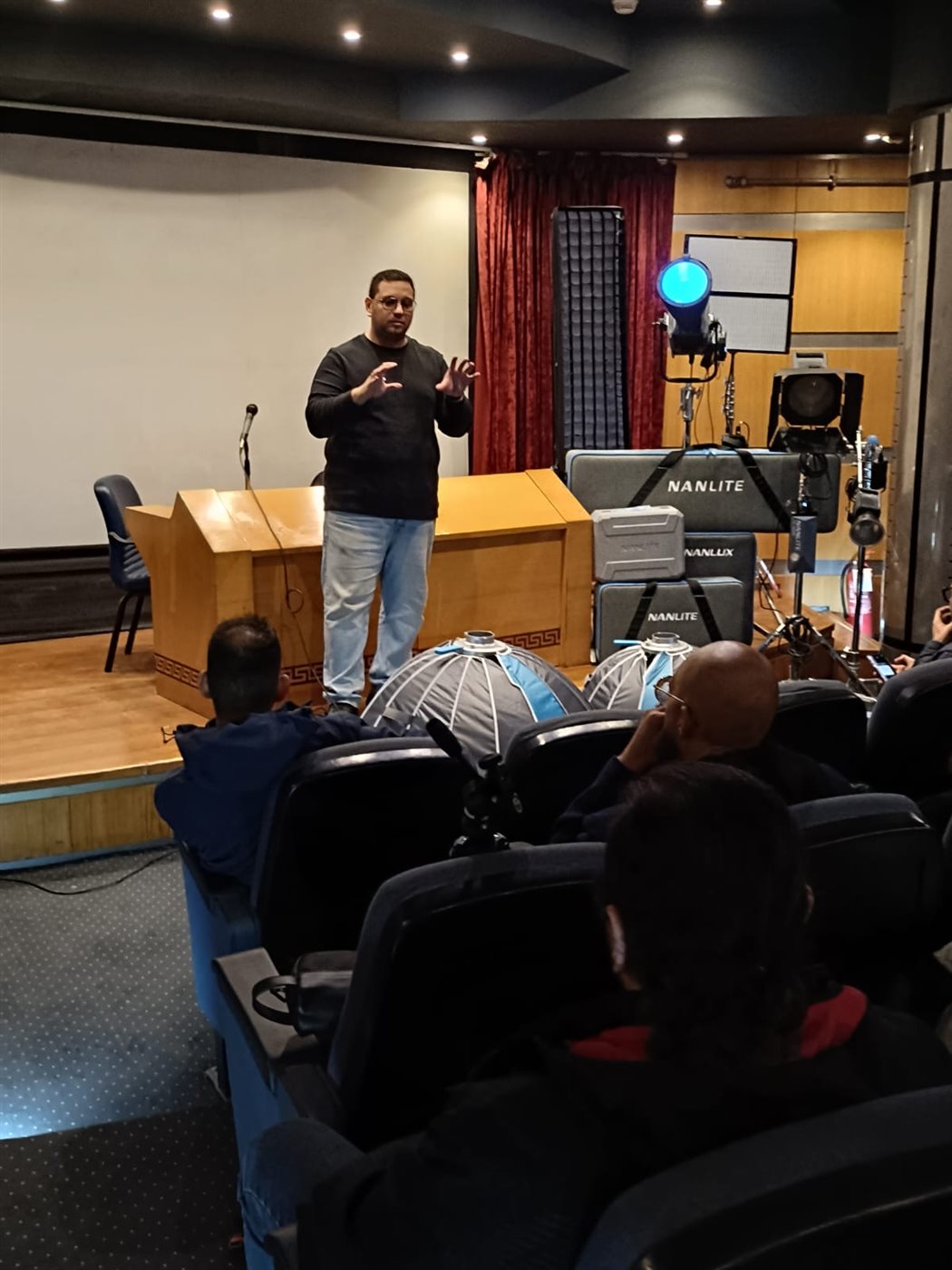 وأكد المحاضر أن استخدام الـ Soft Box يهدف إلى تكبير مصدر الضوء، وكلما زاد حجم المصدر أصبحت الإضاءة أكثر نعومة، وهو ما ينعكس على ملامح الشخصيات ويمنح الصورة طابعًا أكثر سلاسة واحترافية، خاصة في مشاهد الحوار والتصوير القريب.