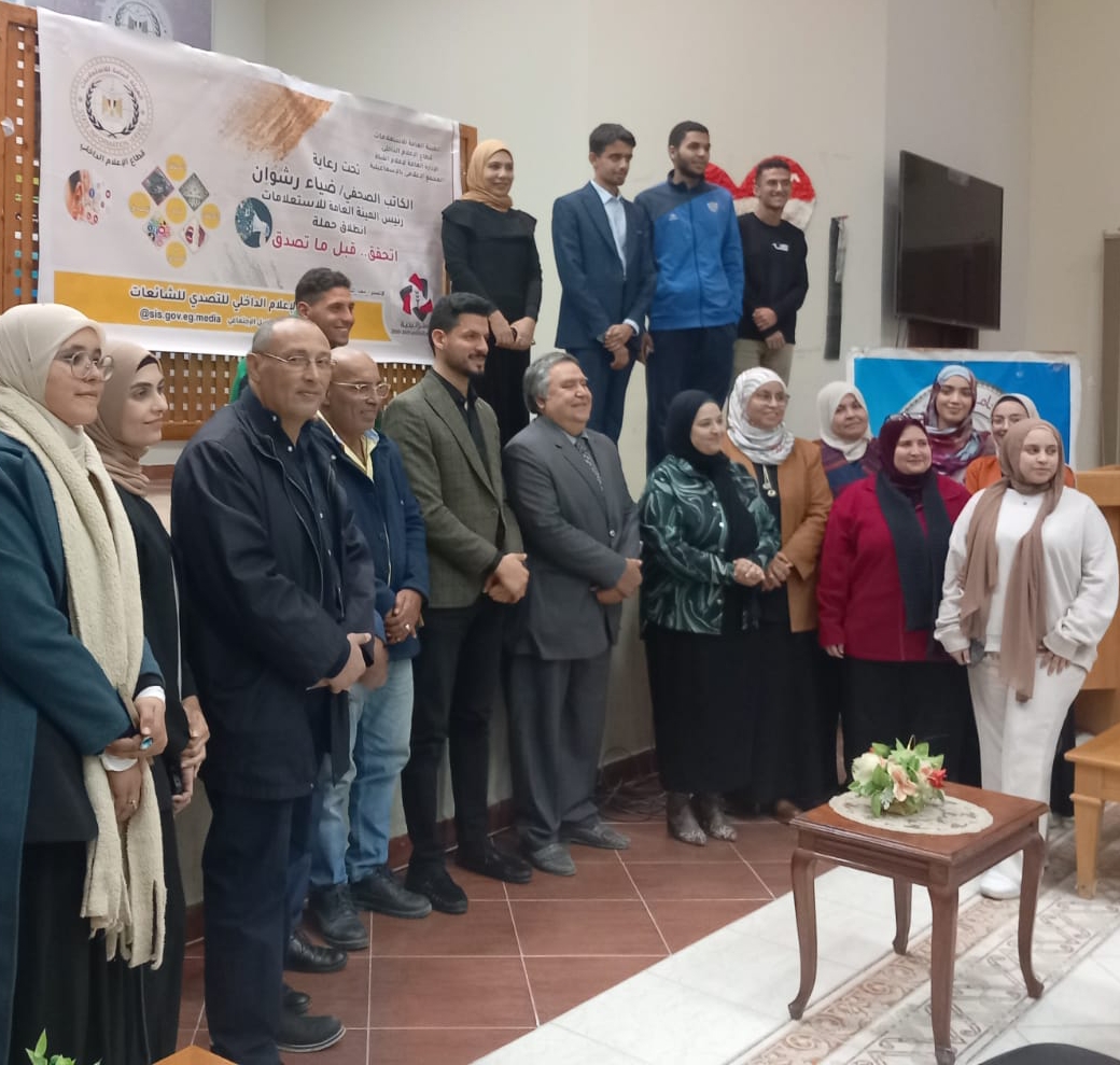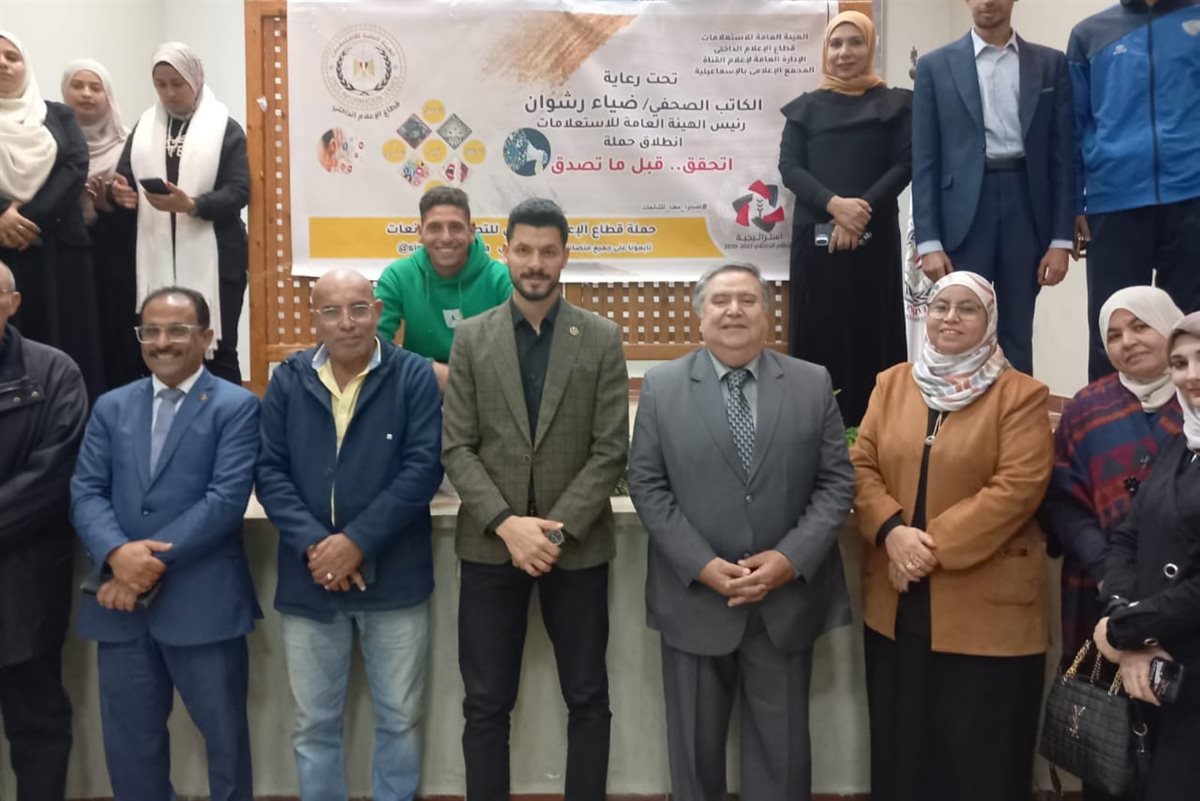 تحت شعار اتحقق قبل ما تصدق نظم المجمع الإعلامي بمحافظة الإسماعيلية حملة توعوية للشباب تستهدف رفع درجة الوعي ومواجهة الشائعات.