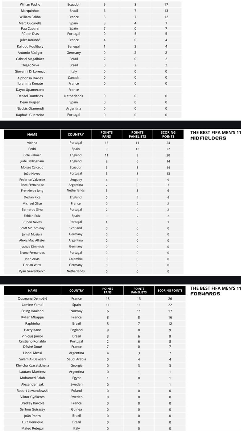 أكد فيفا وجود استقلالية تامة بين الجائزتين، جائزة أفضل لاعب The Best FIFA Men’s Player: تقيم الأداء الشامل للاعب طوال الفترة المحددة (من أغسطس 2024 إلى أغسطس 2025) أما جائزة التشكيل الأفضل، The Best Men’s 11: تعتمد على تصويت منفصل لكل مركز، حيث يُقارن اللاعب فقط بمنافسيه في المركز نفسه، لذا، لا يعني الترتيب المتقدم في جائزة أفضل لاعب بالضرورة الدخول في التشكيل المثالي.