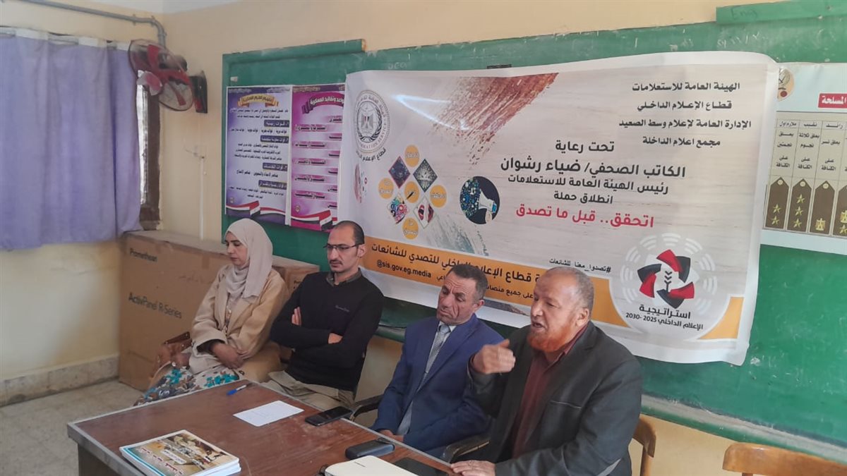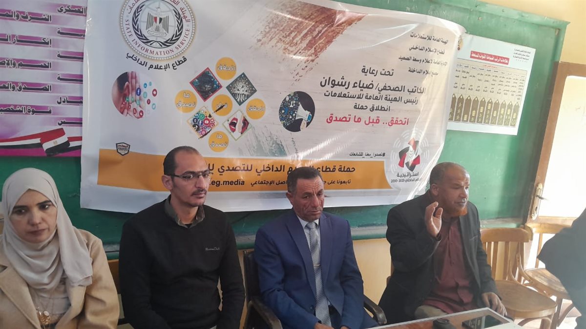 حيث واصل مجمع اعلام الداخلة بمحافظة الوادي الجديد تنفيذ فعاليات الحملة الإعلامية الموسعة التي أطلقها قطاع الإعلام الداخلي تحت شعار "اتحقق قبل ما تصدق" بهدف تعزيز وعي المواطنين بمخاطر الشائعات، وتحت رعاية رئيس الهيئة الدكتور ضياء رشوان، وتوجيهات رئيس قطاع الإعلام الداخلي الدكتور أحمد يحيى، وإشراف رئيس الإدارة المركزية لإعلام شمال ووسط الصعيد حمدي سعيد.