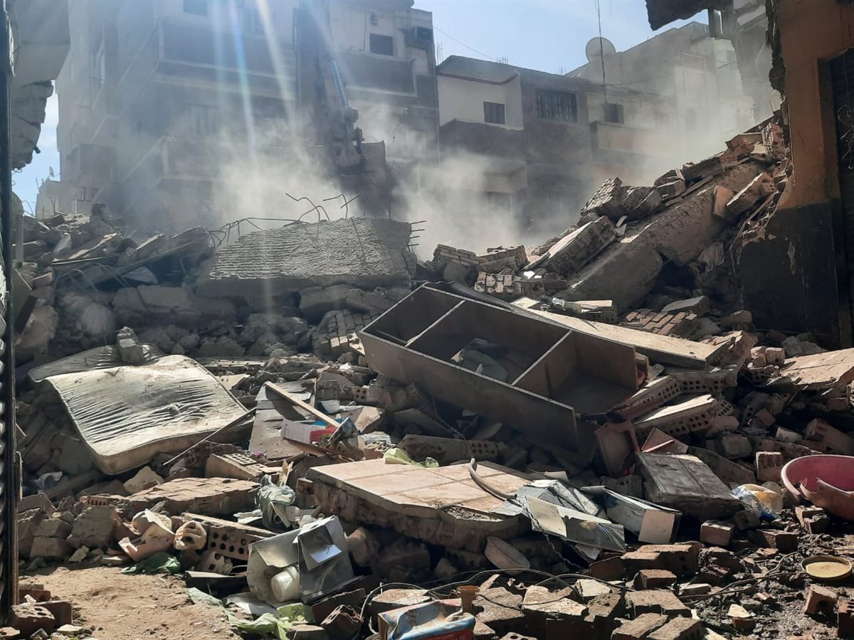 فيما تتواصل عمليات البحث عن مفقودين آخرين تحت أنقاض المنزل المكون من 5 طوابق بمنطقة مضرب الأرز غرب مدينة المنيا.