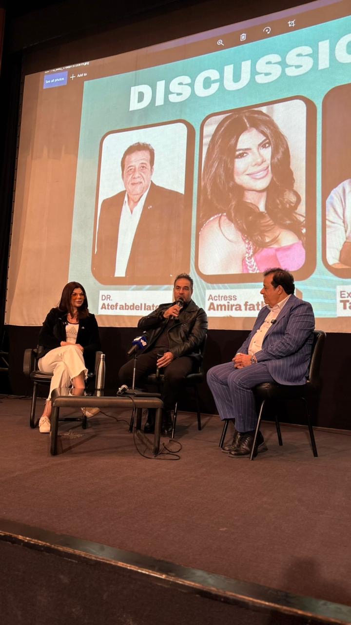 أميرة فتحي و عاطف عبداللطيف بندوة الفن والسياحة بمهرجان القاهرة للفيلم القصير