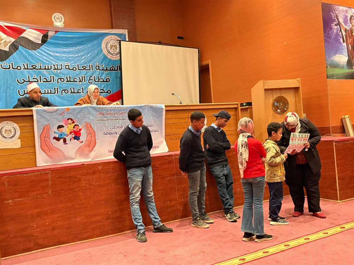 تحت إشراف مباشر من الدكتور أحمد يحيى رئيس قطاع الإعلام الداخلي، وإشراف الدكتور ضياء رشوان رئيس الهيئة العامة للاستعلامات، بالتعاون مع مديرية الأوقاف، التربية والتعليم، والتضامن الاجتماعي بمحافظة السويس.