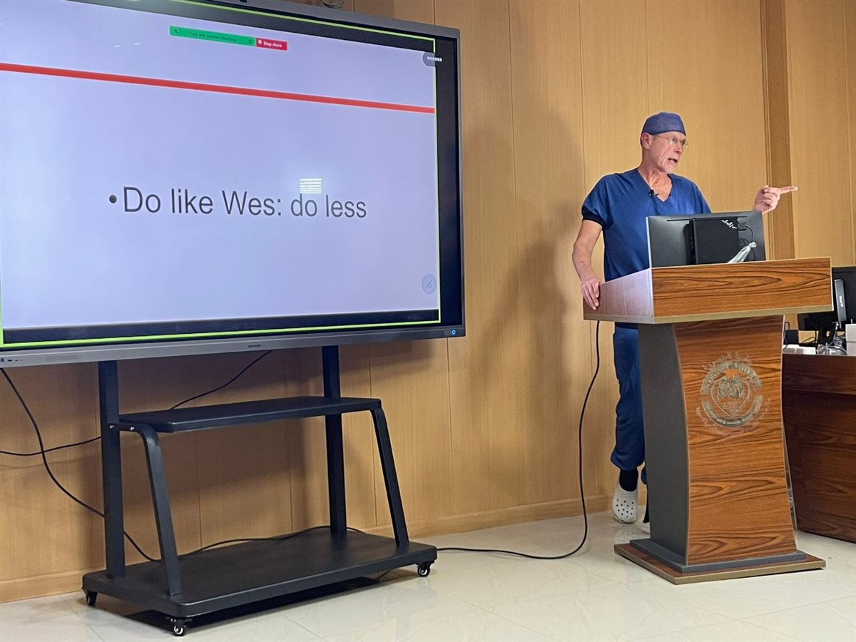 وخلال أيام الورشة، أُجريت نحو خمس عشرة عملية قلب مفتوح داخل مركز جراحة القلب والصدر، شملت جراحات الشرايين التاجية، وإصلاح صمامات القلب، وجراحات العيوب الخِلْقية، إلى جانب تنفيذ عدد من عمليات القسطرة القلبية التداخلية لعلاج الانسدادات المزمنة في الشرايين التاجية (CTO)، وذلك بمستشفى الباطنة التخصصي – قسم القلب.
