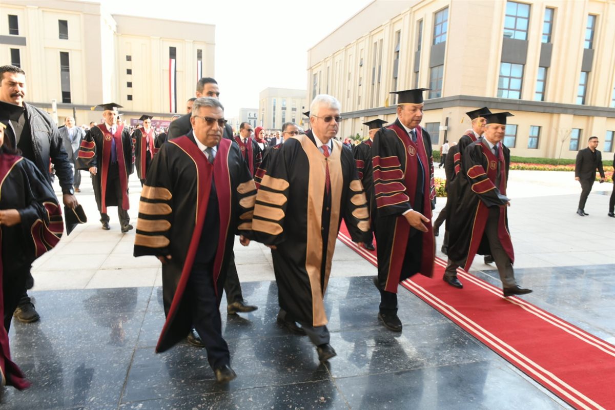 محافظ الدقهلية ووزير التعليم العالي يشهدان احتفال تخرج الدفعة الأولى من جامعة المنصورة الجديدة
