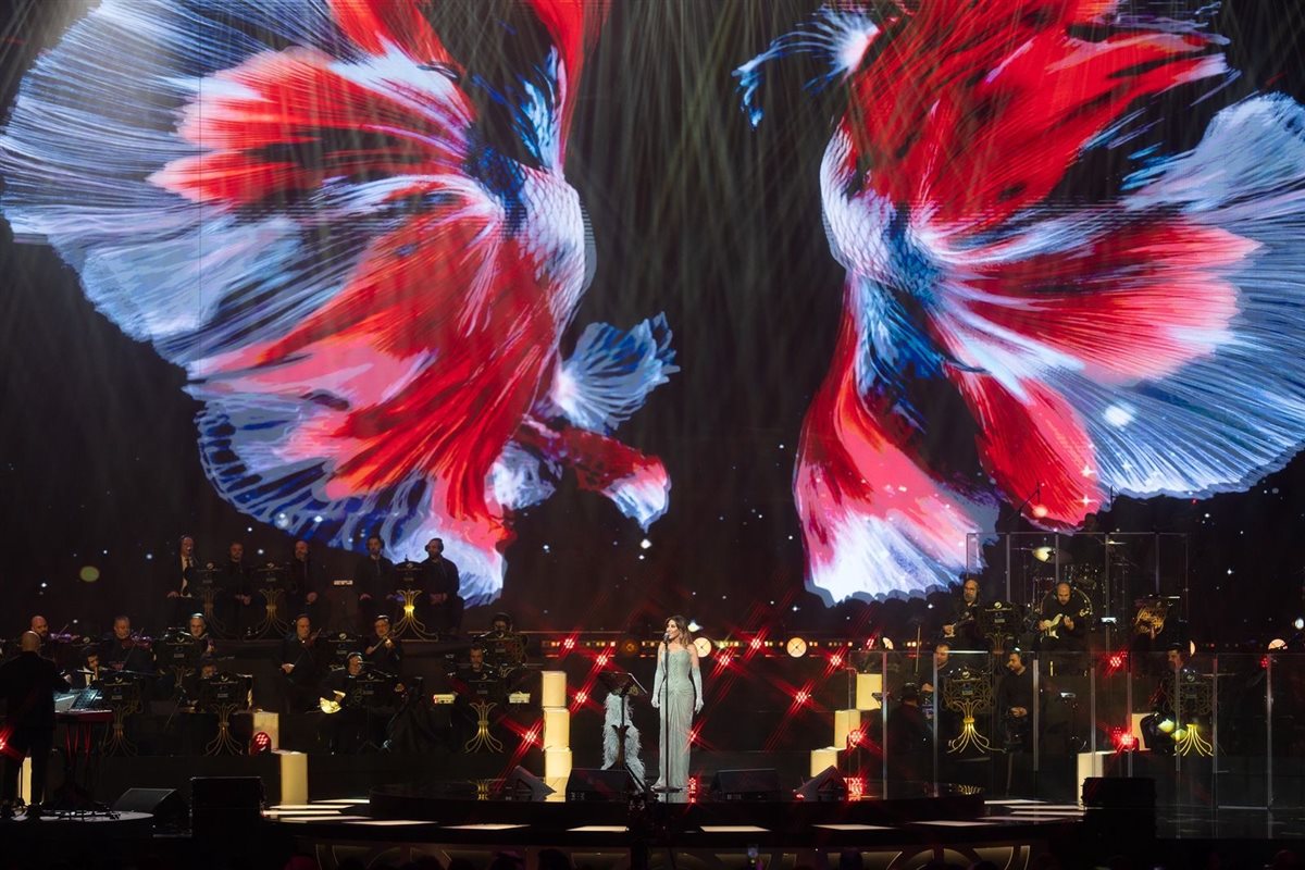 وتألقت نجوى كرم بصوتها الجبلي القوي وأدائها المتفرّد، مقدّمةً عرضاً فنياً متكاملاً جمع بين الإحساس العالي، والحضور المسرحي الطاغي، كما بدت بإطلالة ملكية وفستان ناعم عكس ذوقها الراقي وجمال ملامحها الفاتنة.