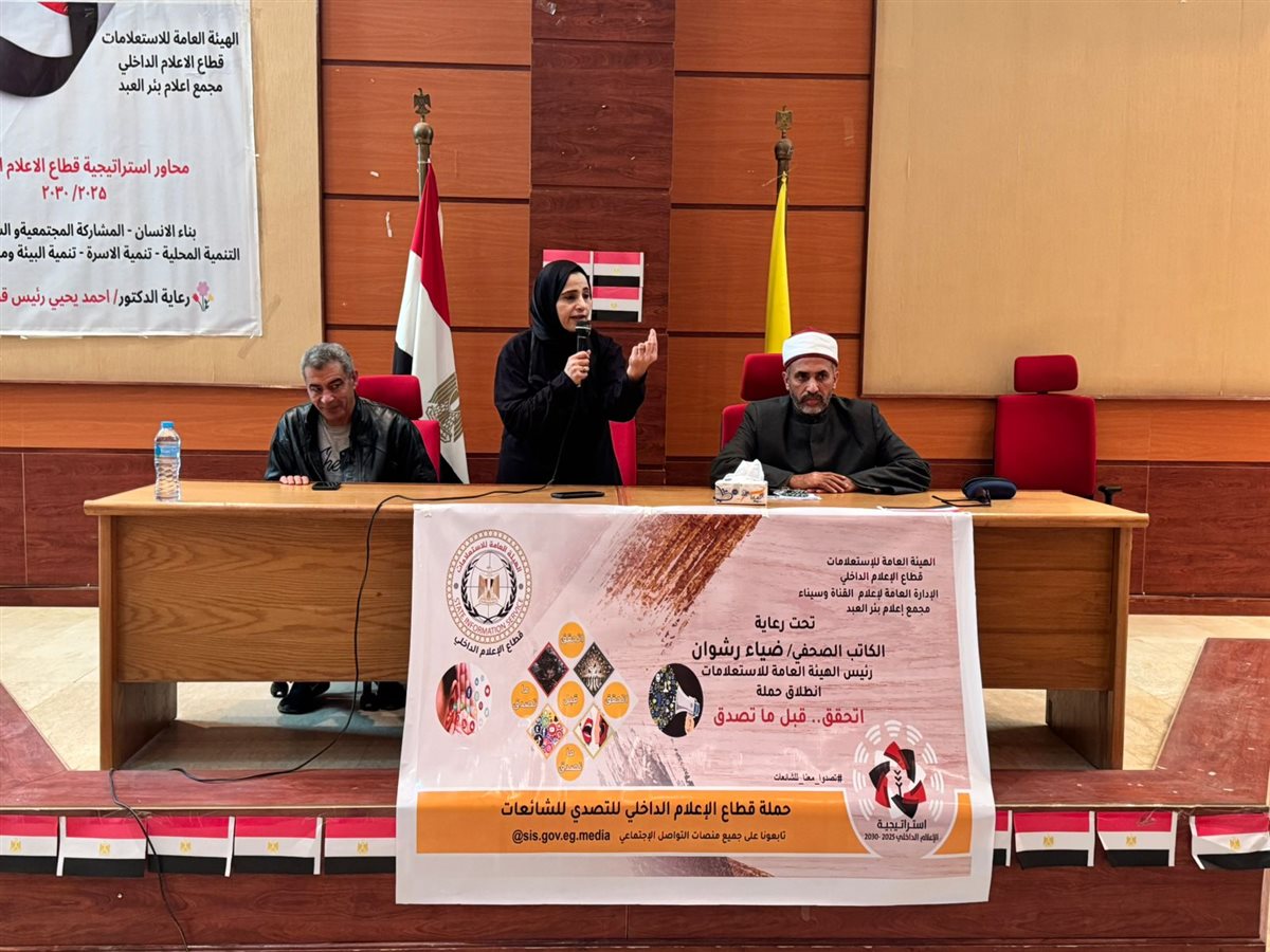 حيث أطلق مجمع إعلام بئر العبد بشمال سيناء حملة توعوية شاملة تهدف إلى مواجهة الشائعات وتعزيز التثقيف السياسي بين الشباب في إطار جهود الهيئة العامة للاستعلامات لرفع الوعي المجتمعي وحماية المجتمع من المعلومات المغلوطة.