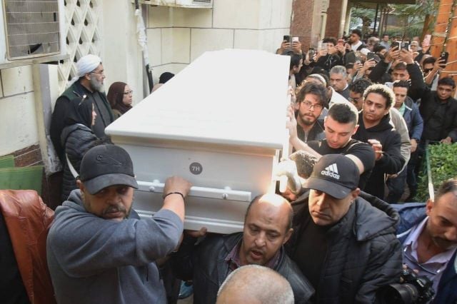 نجل سمية الألفي يحاكي نعش والدته في الوداع الأخير