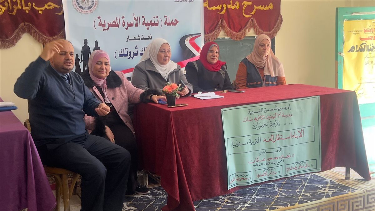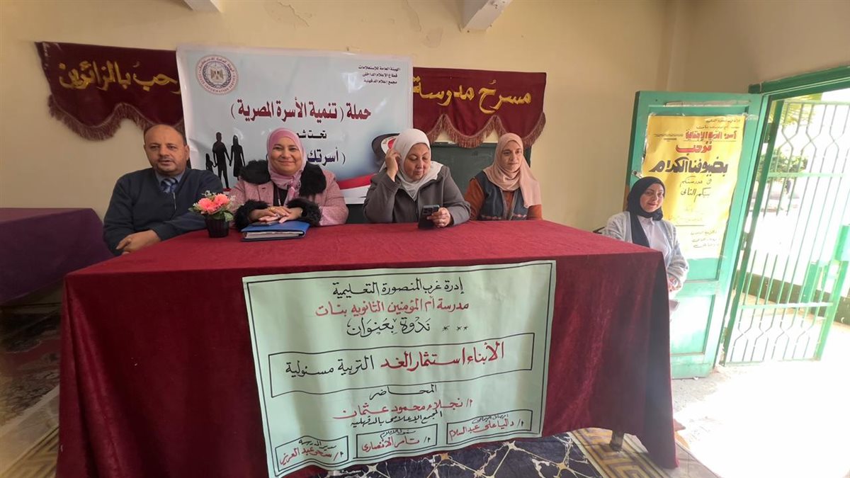 حيث قام مجمع إعلام الدقهلية من خلال وحدة الاعلام السكاني بتنفيذ ندوة اعلامية بعنوان الابناء استثمار الغد التربية مسؤولية وذلك بمقر مدرسة ام المؤمنين الثانوية بنات بمدينة المنصورة
