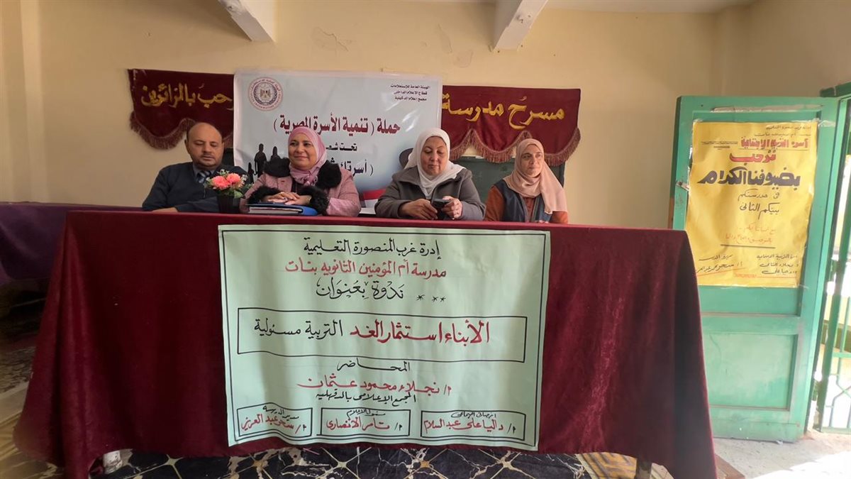 نفذ مجمع إعلام الدقهلية من خلال وحدة الاعلام السكاني ندوة اعلامية موسعة حملت عنوان الابناء استثمار الغد التربية مسؤولية وذلك بمقر مدرسة ام المؤمنين الثانوية بنات بمدينة المنصورة وبمشاركة عدد كبير من الطالبات واعضاء هيئة التدريس في اطار يهدف الى تعميق الوعي بمفهوم التربية الشاملة وربطها بالاستثمار طويل المدى في الانسان