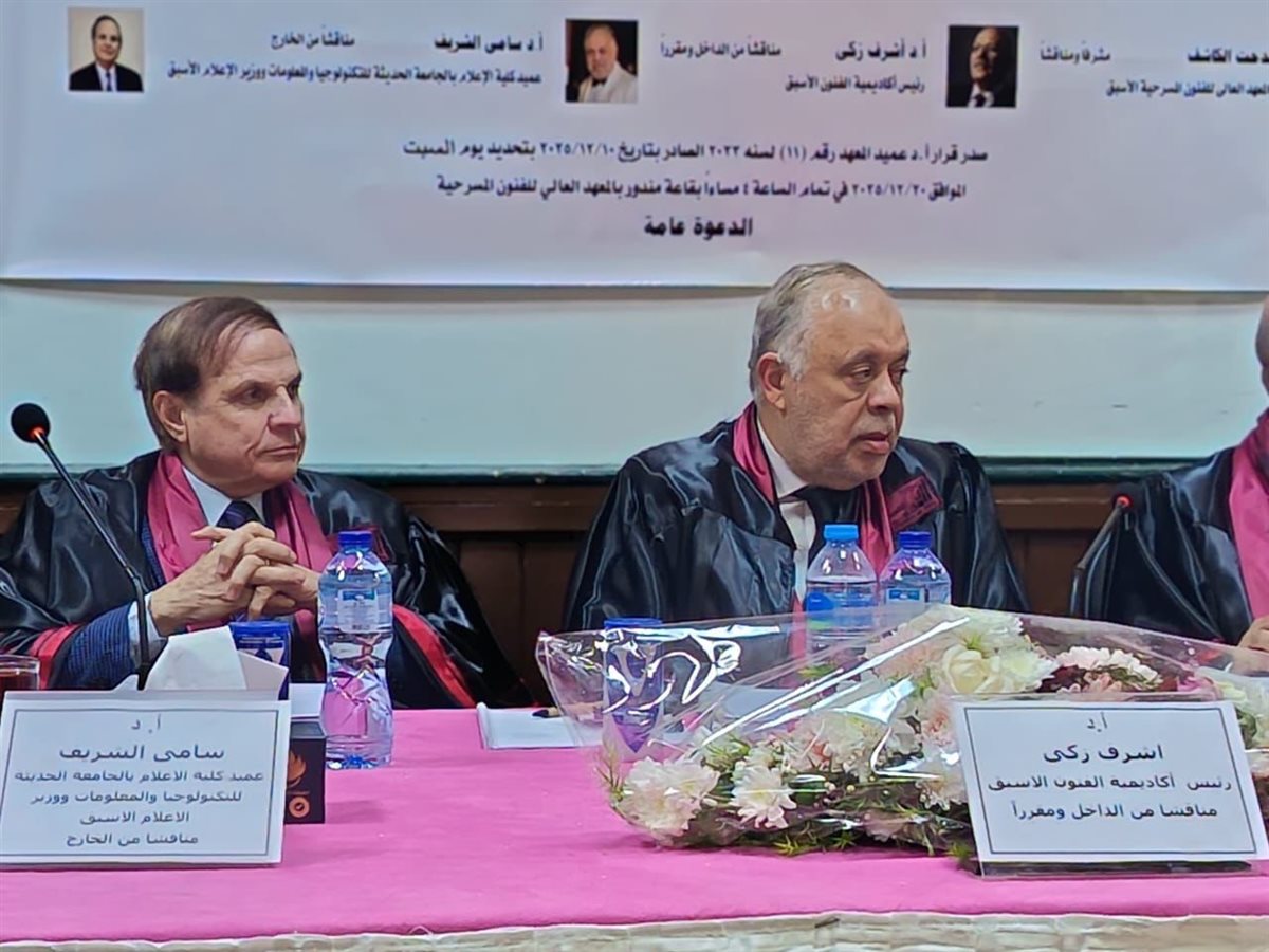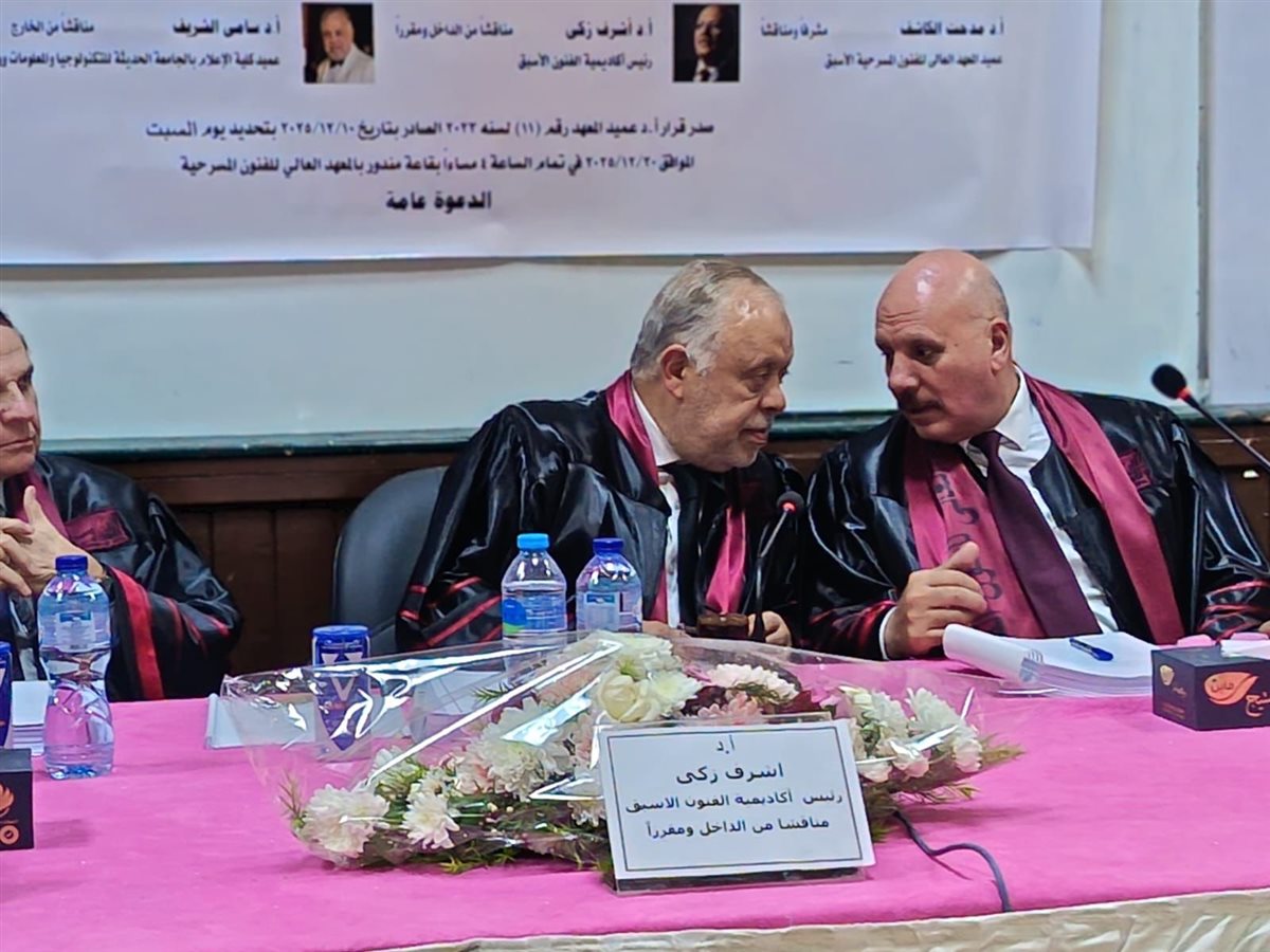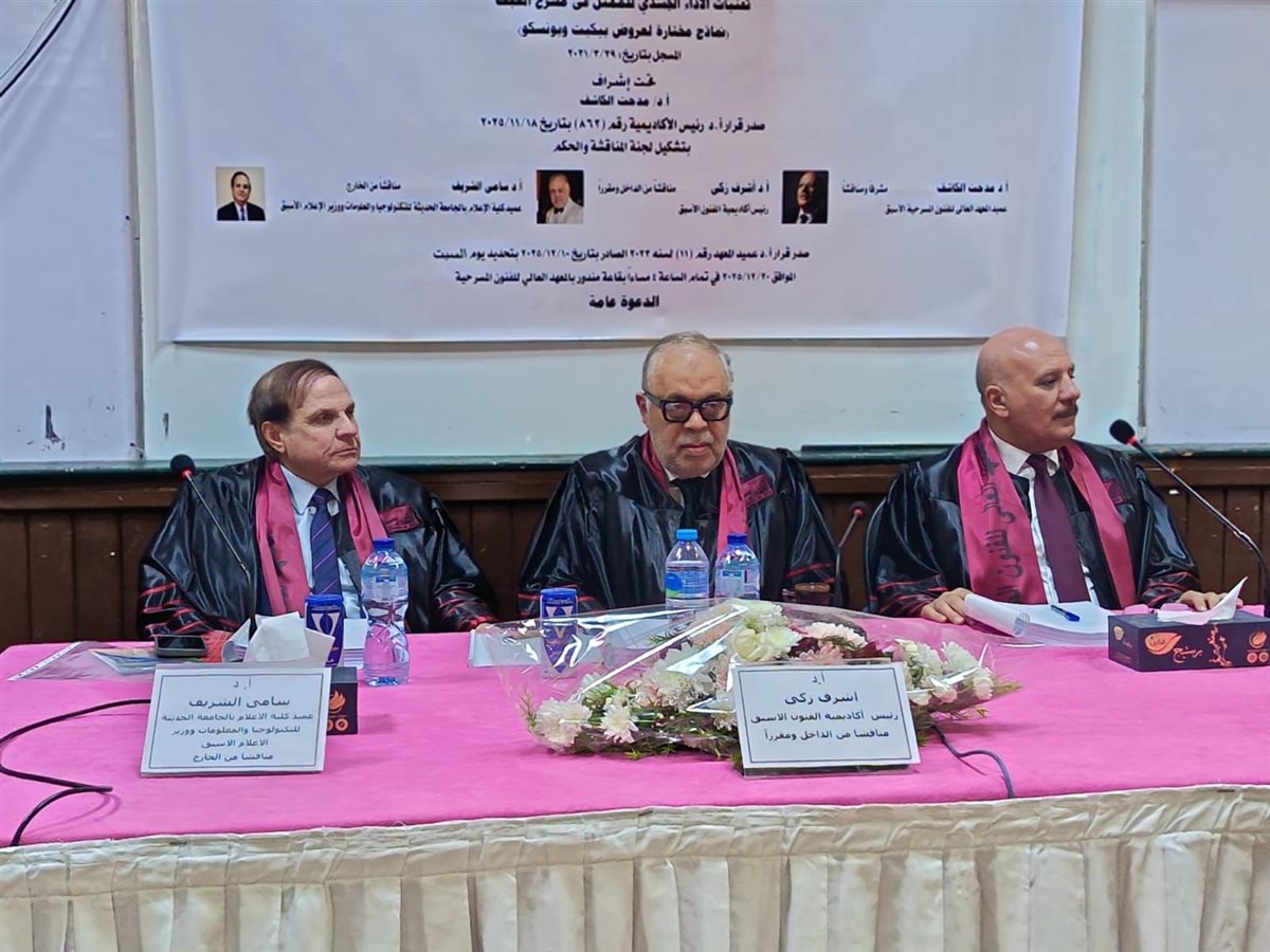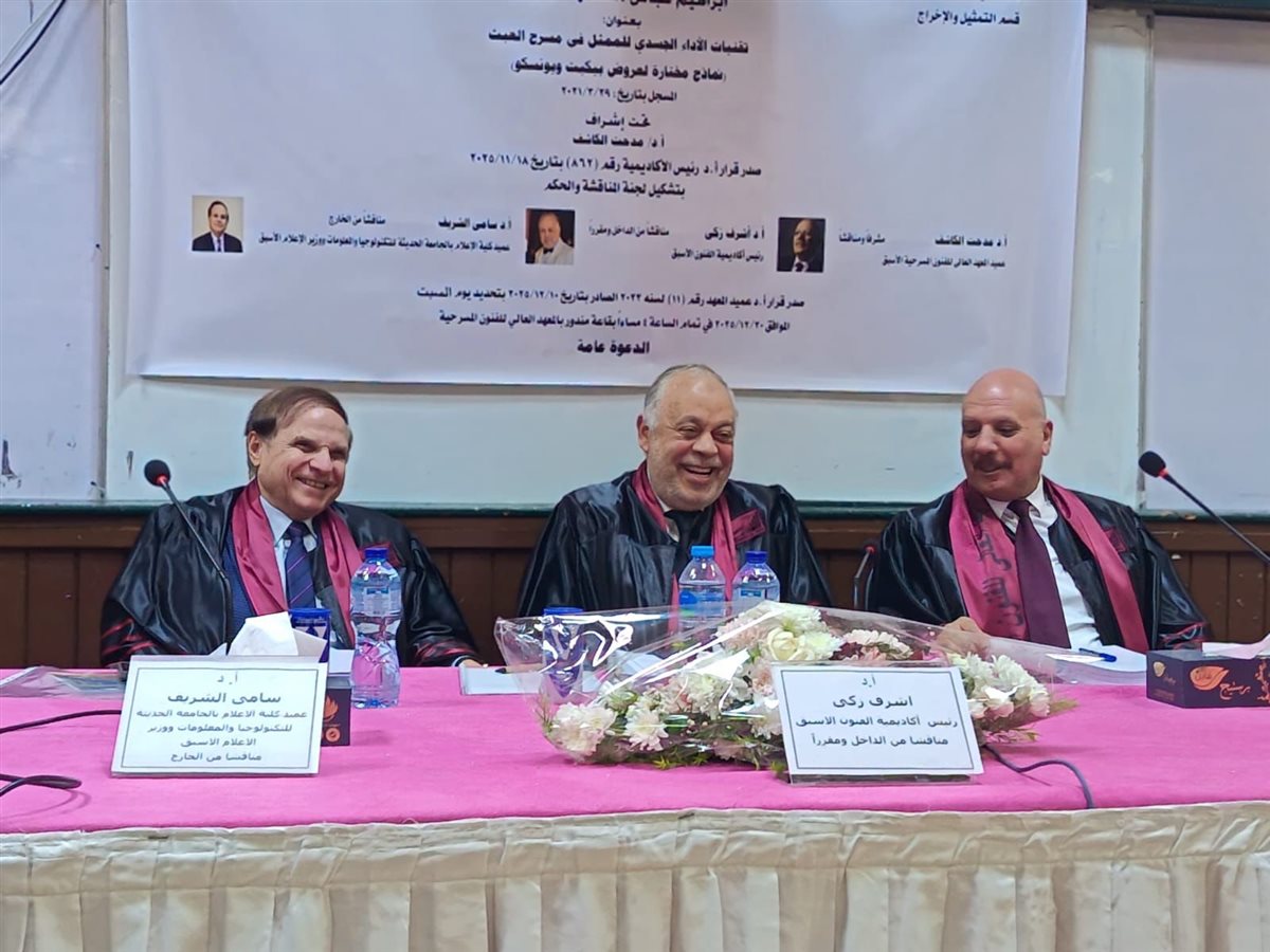 وأشادت لجنة المناقشة بالرسالة، مؤكدة تميزها علميًا وتطبيقيًا، وثراءها المرجعي، وقدرتها على الربط بين الجانب الأكاديمي والخبرة المسرحية العملية، وهو ما انعكس في قرار منح الباحث درجة الدكتوراه بمرتبة الشرف.