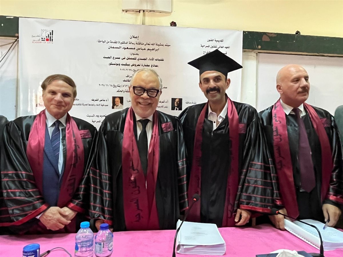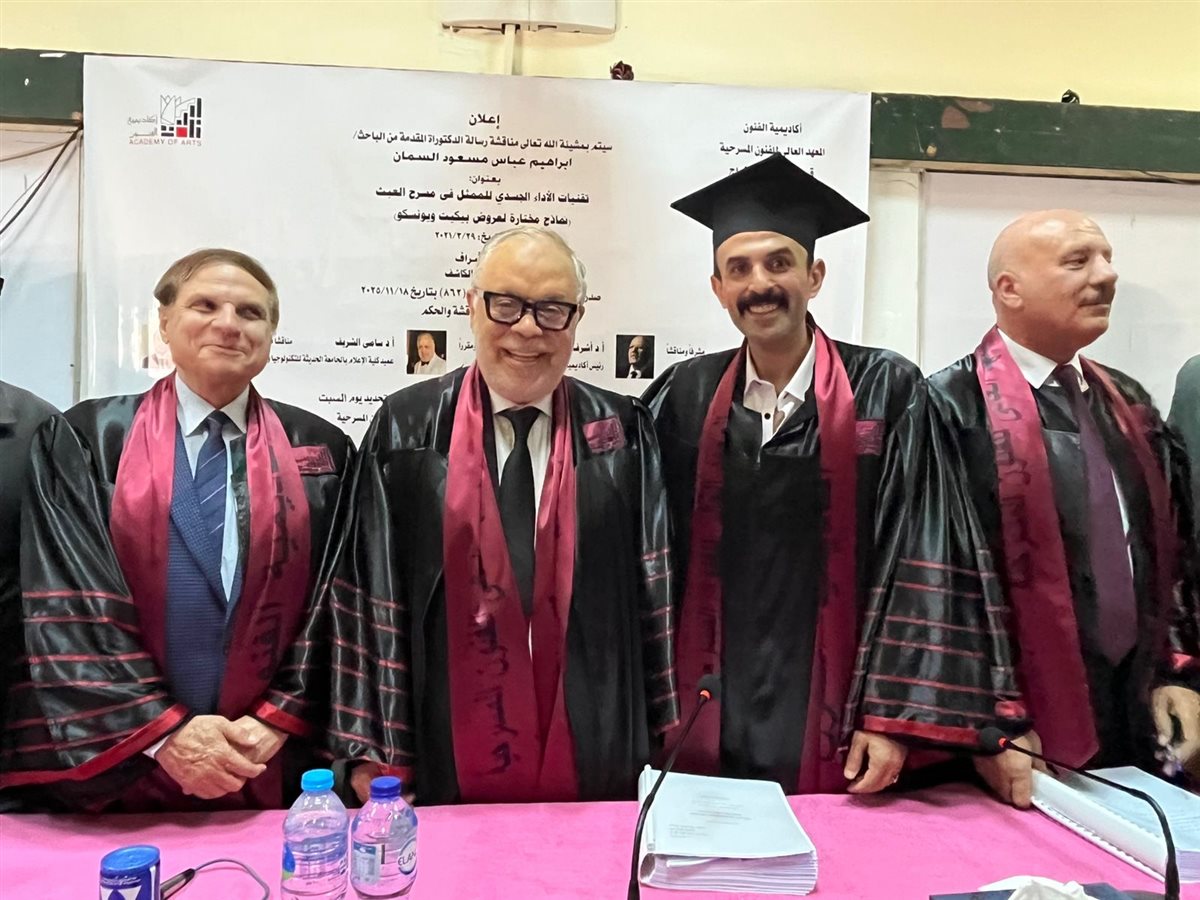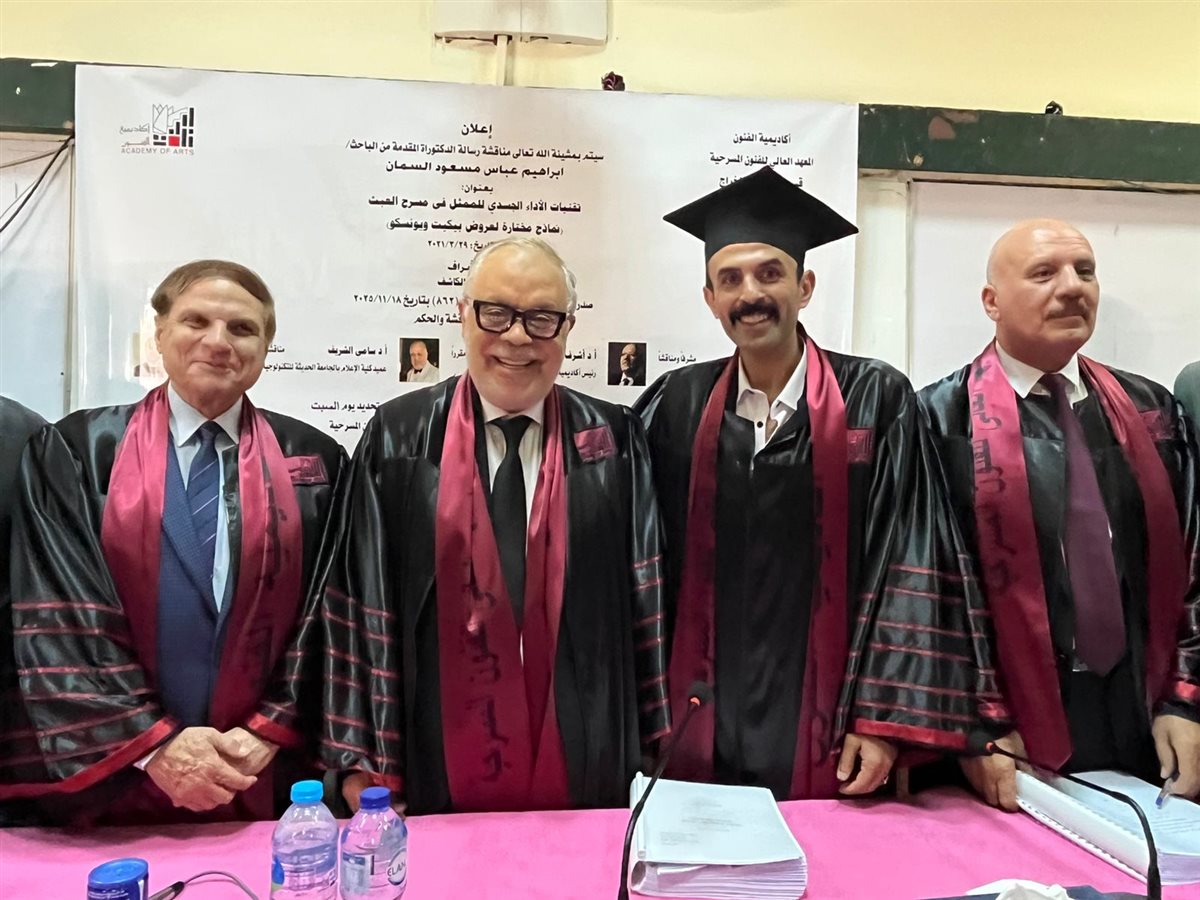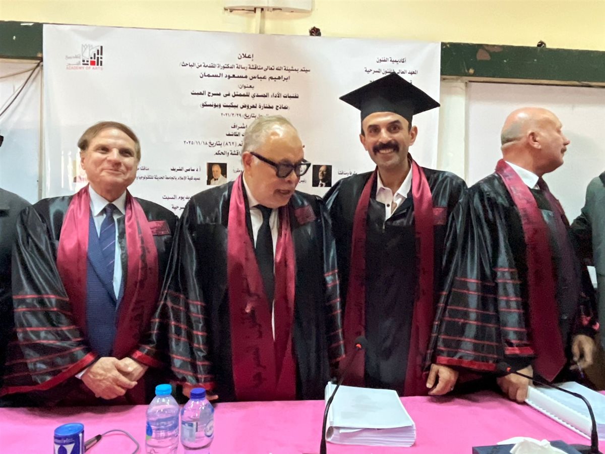 حصل الفنان والباحث إبراهيم السمان على درجة الدكتوراه بمرتبة الشرف من أكاديمية الفنون، وذلك عقب مناقشة رسالته العلمية بقسم التمثيل والإخراج بالمعهد العالي للفنون المسرحية، وسط حضور أكاديمي وفني لافت.