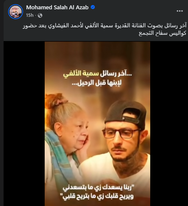 - آخر رسالة من سمية الألفي لابنها أحمد الفيشاوي