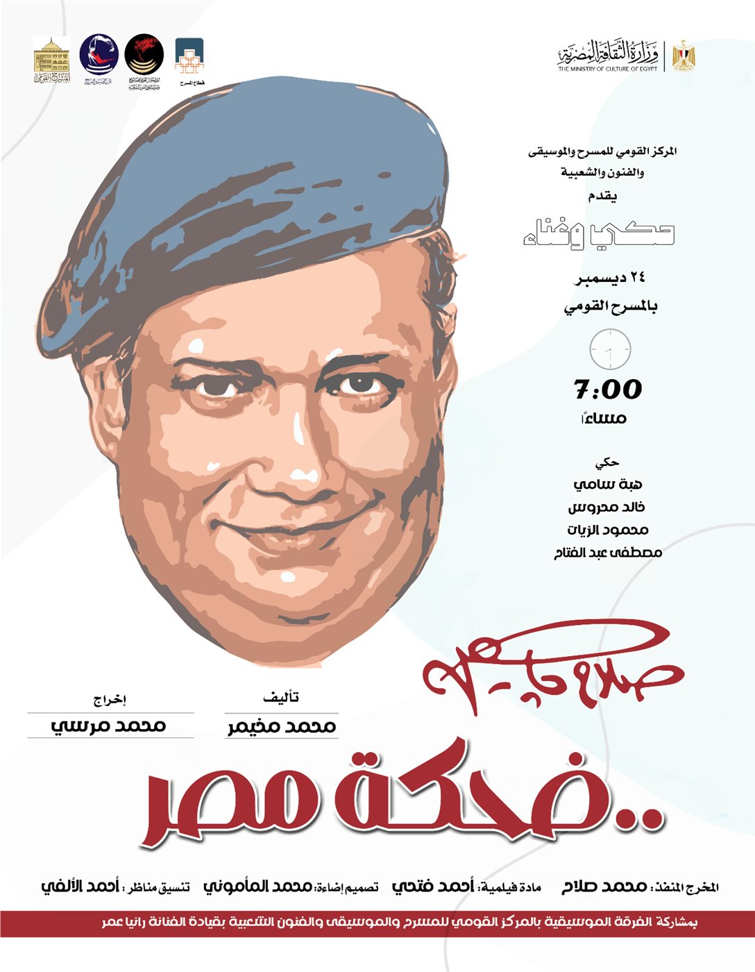 في إطار حرص وزارة الثقافة على تكريم رموز الإبداع المصري، ينظم المركز القومي للمسرح والموسيقى والفنون الشعبية احتفالية فنية كبرى لإحياء ذكرى ميلاد المبدع الراحل صلاح جاهين، وذلك من خلال عرض الحكي والغناء «جاهين.. ضحكة مصر»، في تمام السابعة مساء يوم الأربعاء المقبل الموافق 24 ديسمبر، على خشبة المسرح القومي بوسط القاهرة.