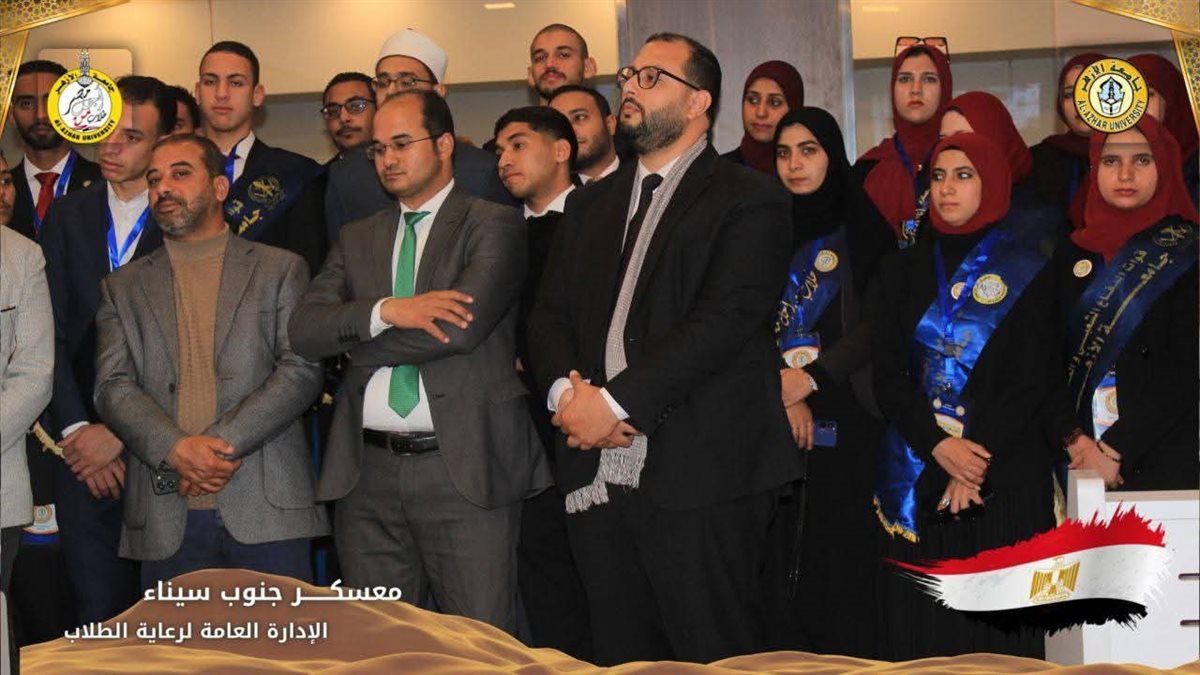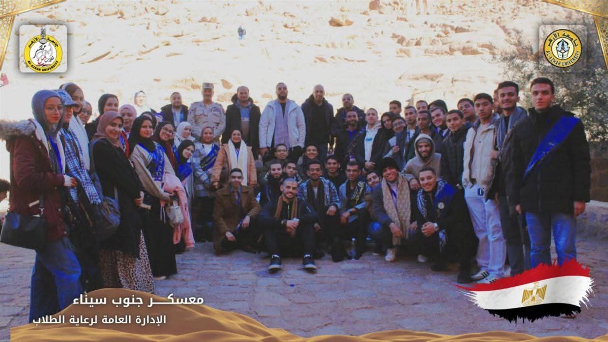 نظَّمت الإدارة العامة لرعاية الطلاب بجامعة الأزهر، بالتعاون مع قوات الدفاع الشعبي والعسكري، زيارةً لفوج من طلاب جامعة الأزهر (أسرة طلاب من أجل مصر) إلى أرض سيناء، وذلك على مدار أربعة أيام، تحت رعاية الأستاذ الدكتور سلامة داود، رئيس جامعة الأزهر، والأستاذ الدكتور سيد بكري، نائب رئيس الجامعة لشؤون التعليم والطلاب.