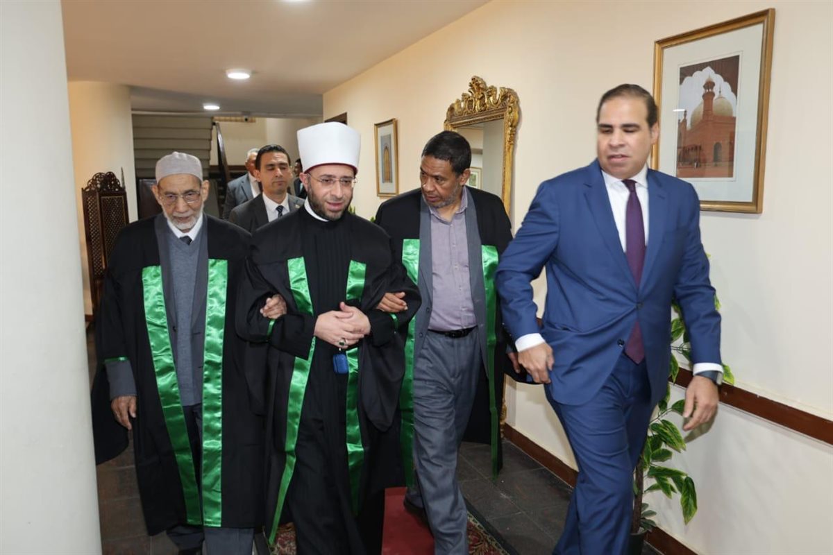 شارك الأستاذ الدكتور أسامة الأزهري - وزير الأوقاف، اليوم، في مناقشة رسالة ماجستير في الشريعة الإسلامية بالمعهد العالي للدراسات الإسلامية، للباحث رابح فرج الله، من دولة الجزائر، وذلك في إطار حرصه على دعم البحث العلمي الجاد، وتشجيع طلاب العلم والباحثين في مختلف التخصصات الشرعية.
